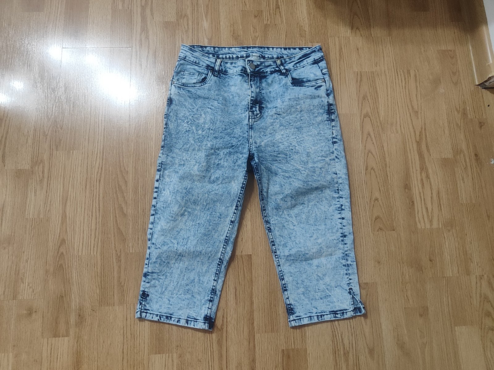 Predám veľmi pekné trojštvrťové nohavice.Rozmery pás 90 cm je na gumičku dá stiahnuť opaskom, boky 110 CM, dĺžka sed 36 CM, celková dĺžka 73 cm