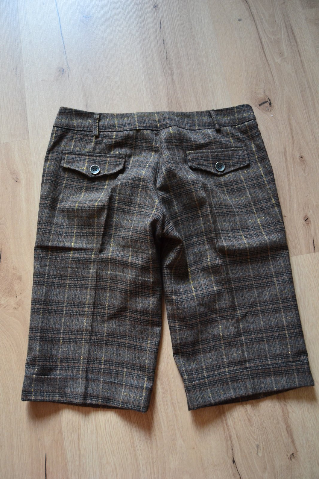 Dámske hnedé krátke nohavice, teplejší materiál, veľkosť M, obvod pásu 76 cm, bokov 94 cm, dĺžka 50 cm.