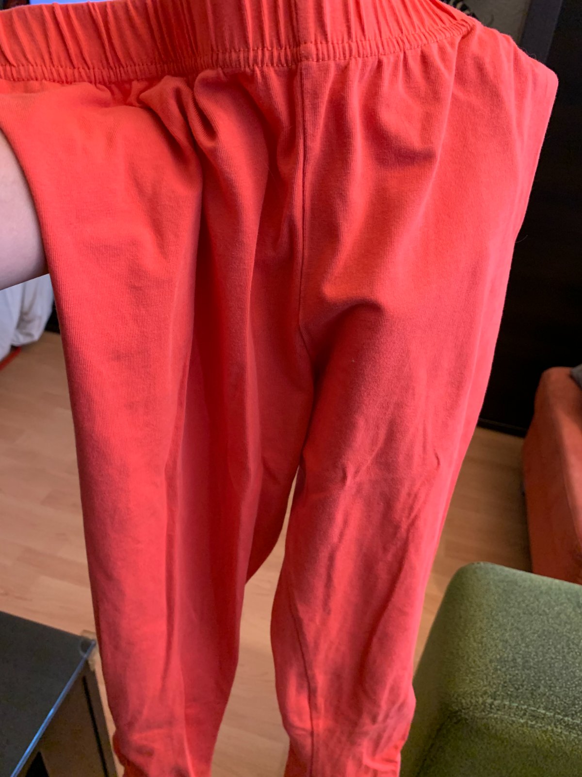 3/4 ové legíny so zipsom po bokoch. Farba sa mi zle fotila, niečo medzi lososovou a oranžovou. Dobrý stav bez poškodení.