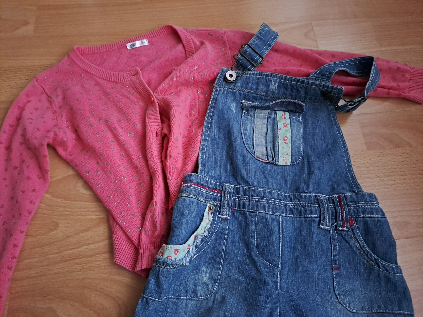 Úžasné riflove kratasy na traky. Veľkosť 4-5 rokov. Svetrík k tomu zadarmo.