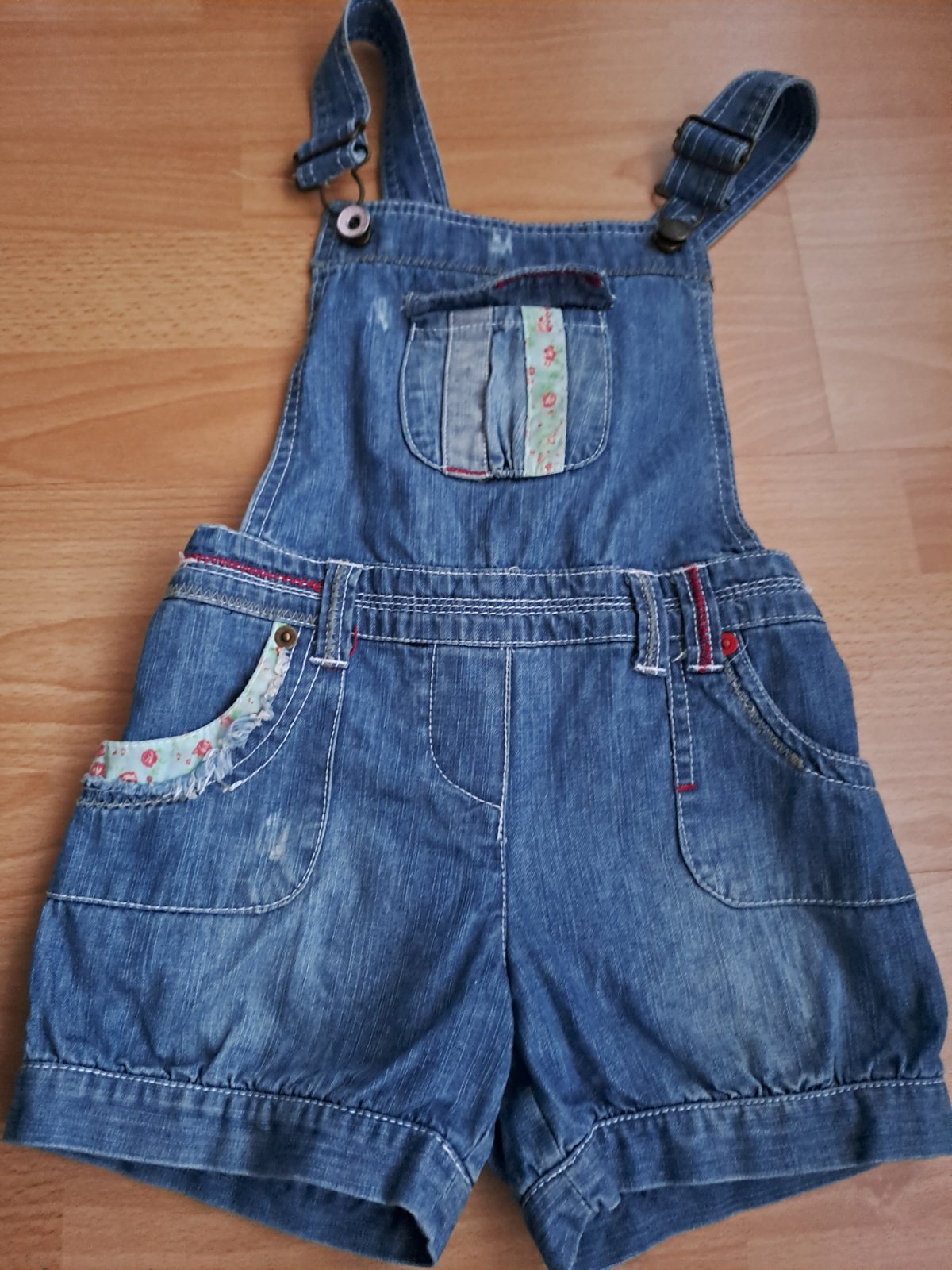 Riflové kraťasky v top stave, vhodné na 3 roky.Majú v páse regulovateľnú gumičku.