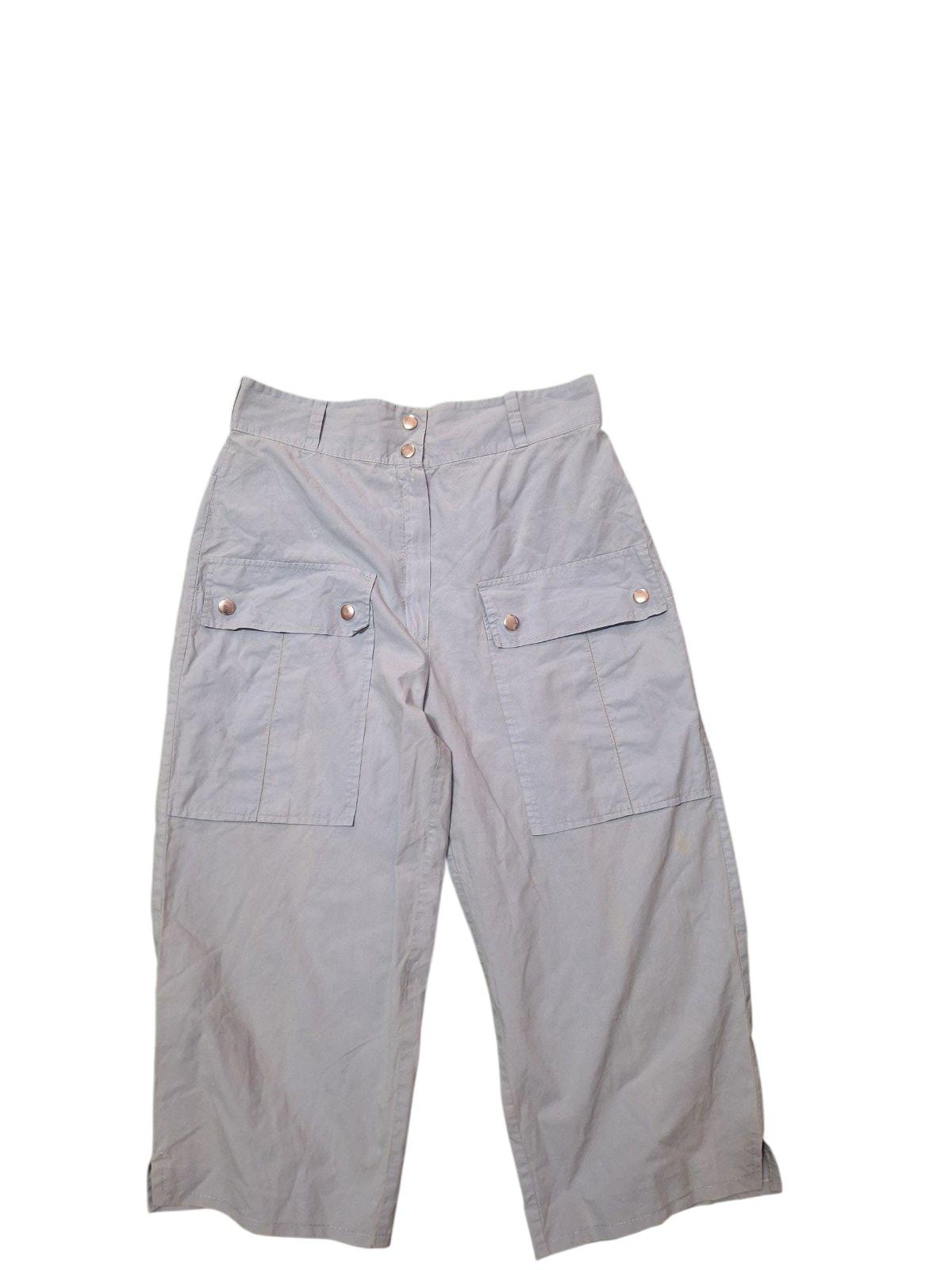 Popis tovaru: raz oblečené tenké 3/4 nohavice stiahnuté na kolenách celkovo voľný strih, velmi zachovalý stav boli prané, poslúžia na donosenie, nemajú žiadne vady ani poškodenia poslúžia na bežné...