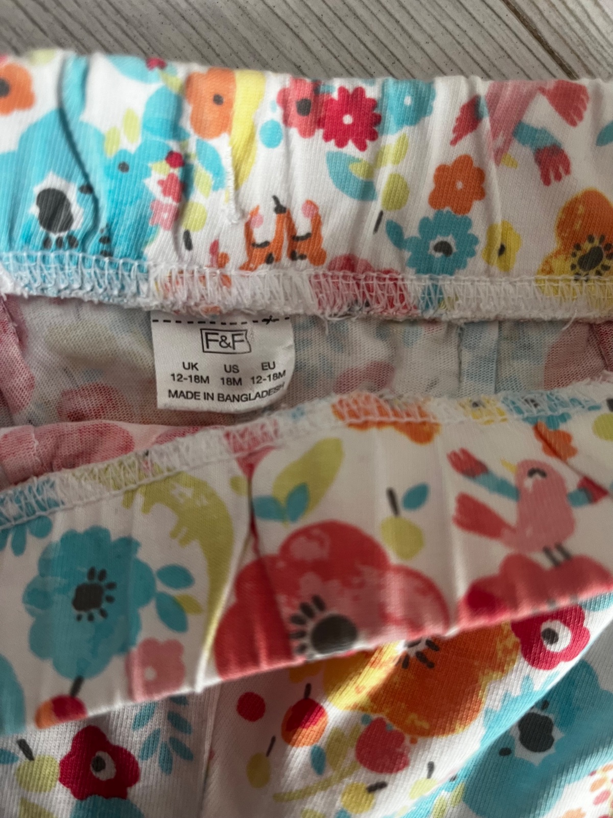 Predám krstné farebne vzorované nohavice s cipkou. Značka: F&F, veľkosť: 86 (12-18 mesiacov).