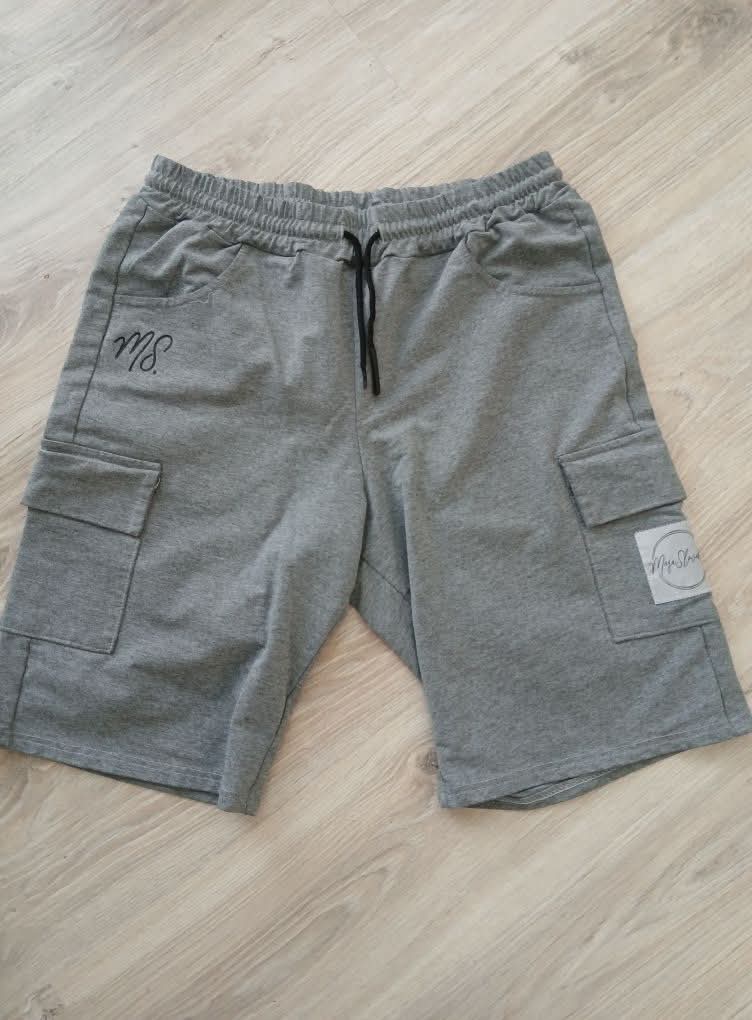 predám sivé pánske šortky č.L, pás na gumičku v klude 90cm dlžka 48cm, veľmi dobrý stav bez poškodenia + pošt