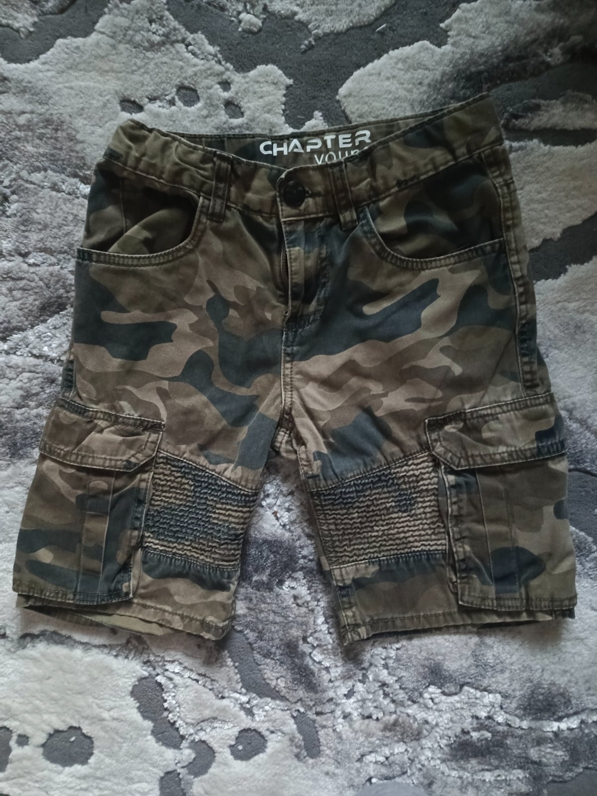 Cena spolu. Maskáčkové kraťasky zn.Zara v dobrom stave, riflové šortky Chapter young ako nové