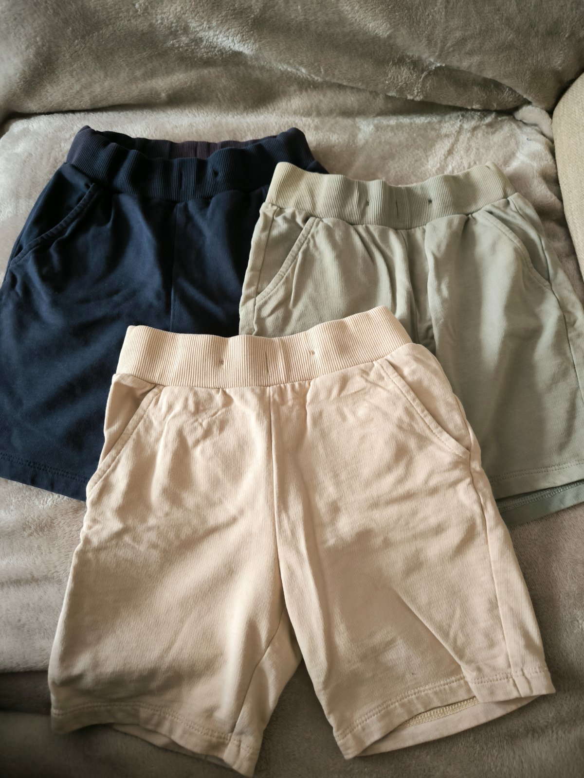 Zdravim, posúvame kratase Lindex troje za cenu 12€, dvojčislie 98/104. Dvoje sú v super stave a tie modré trošku je vyšuchana farba vzadu inak sú ok.