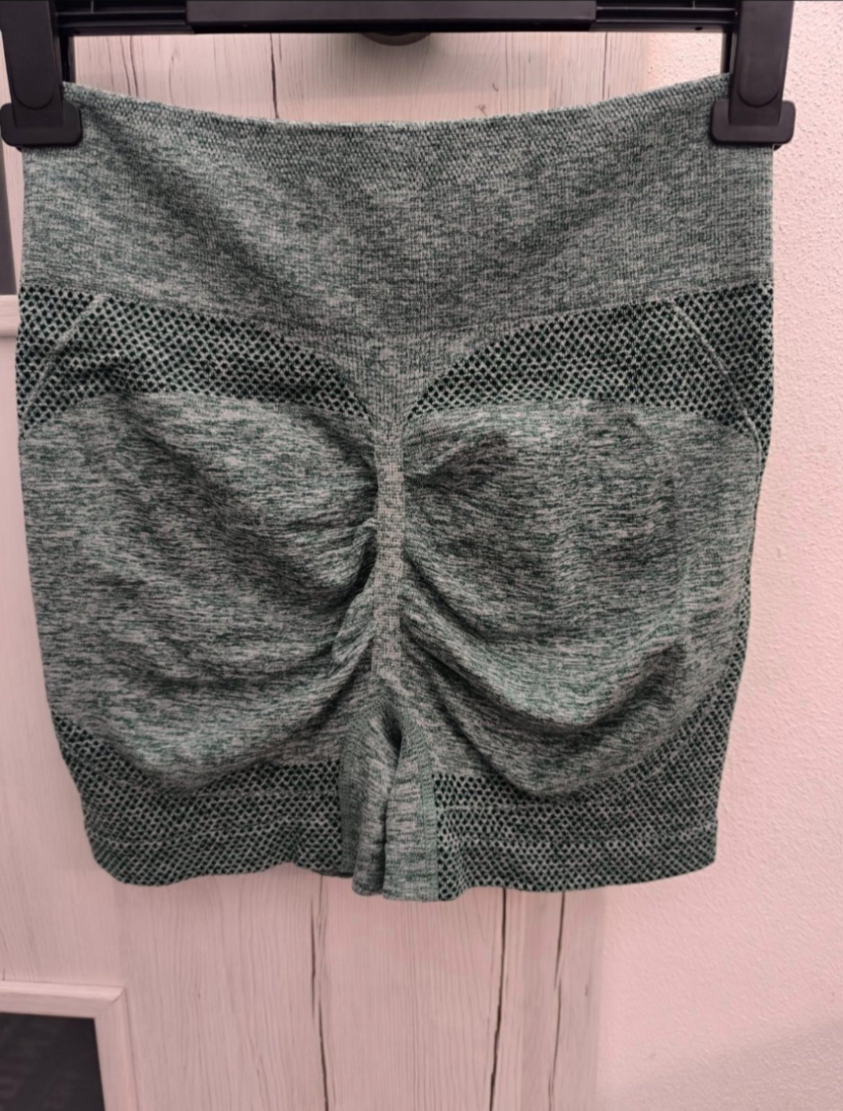 Krátke ľahučké obtiahnuté šortky, sú nariasené, takže pekne tvarujú zadok. Sú elastické, sedia aj na veľkosť L je tam vysoký pás. Vyskúšané.