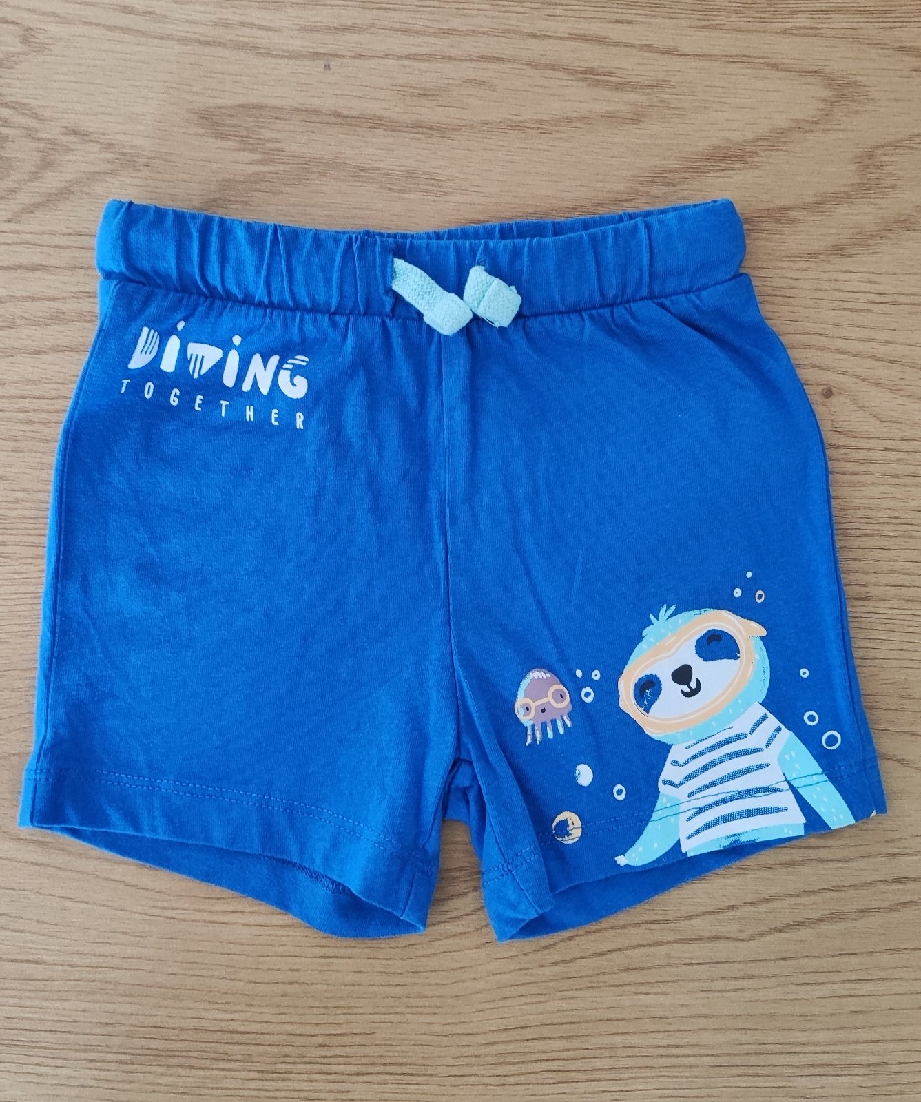 Kratasky v dobrom nosenom stave,tie modre oblecene asi 2x boli nam velke 😁...