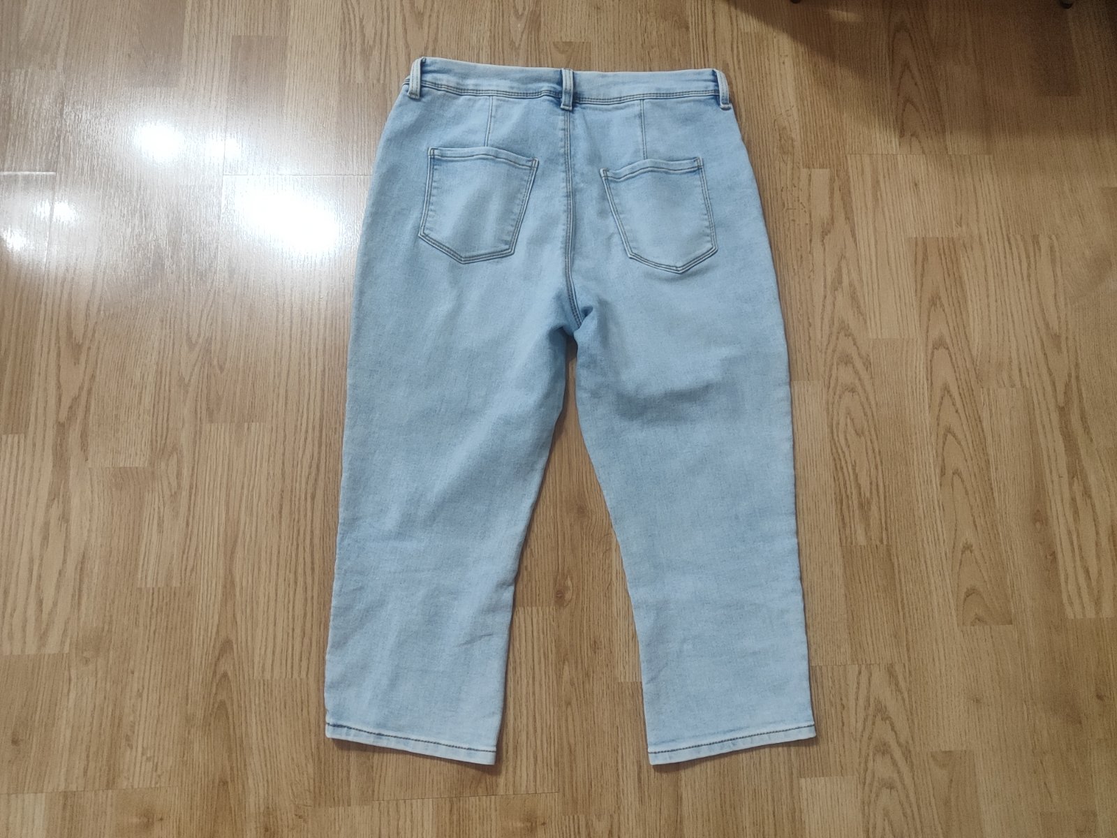 Nevymieňam. Pár x oblečené,príjemné na nosenie,dĺžka 82cm,pás 2x 42cm,predný sed 24cm,zadný sed 35cm,100%bavlna...na boku je akoby vyblednutý pás,viď foto-viď zblízka,dôvod nižšej ceny,,,kuk aj na ...