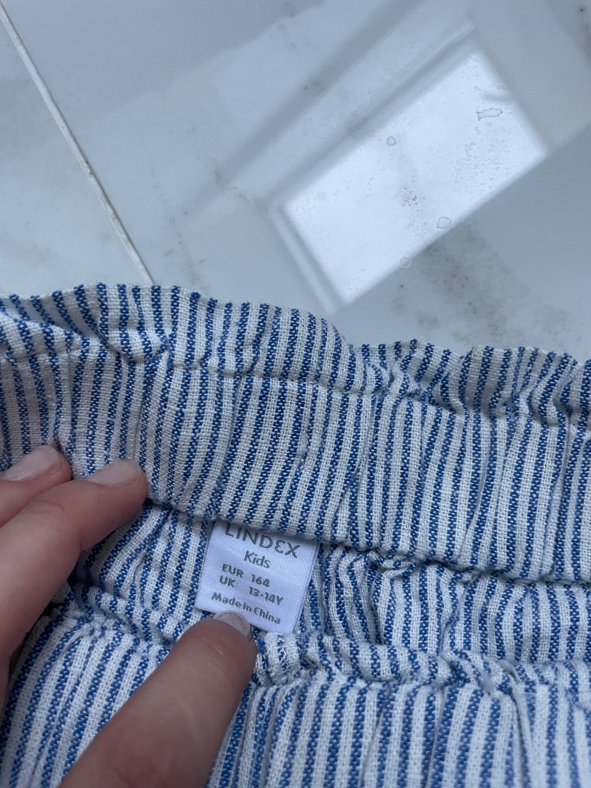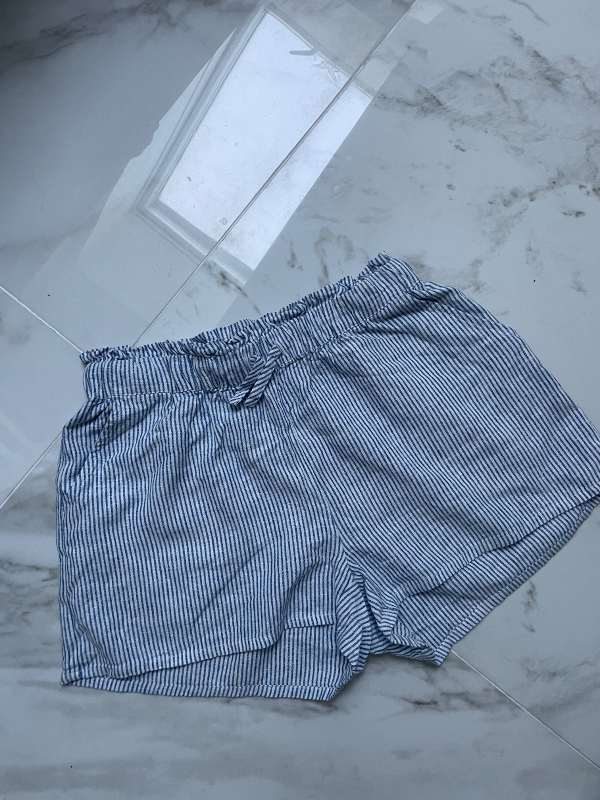 ,Predám veľmi pohodlné pruhované kraťasy značky Lindex (Kids), veľkosť EUR 164 (13–14 rokov), no sedia aj XS. Mäkký, príjemný materiál s gumou v páse a mašličkou. Veľmi dobrý stav, vhodné na bežné nosenie v lete. ľanová zmes