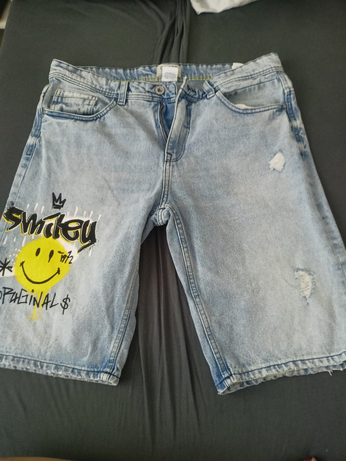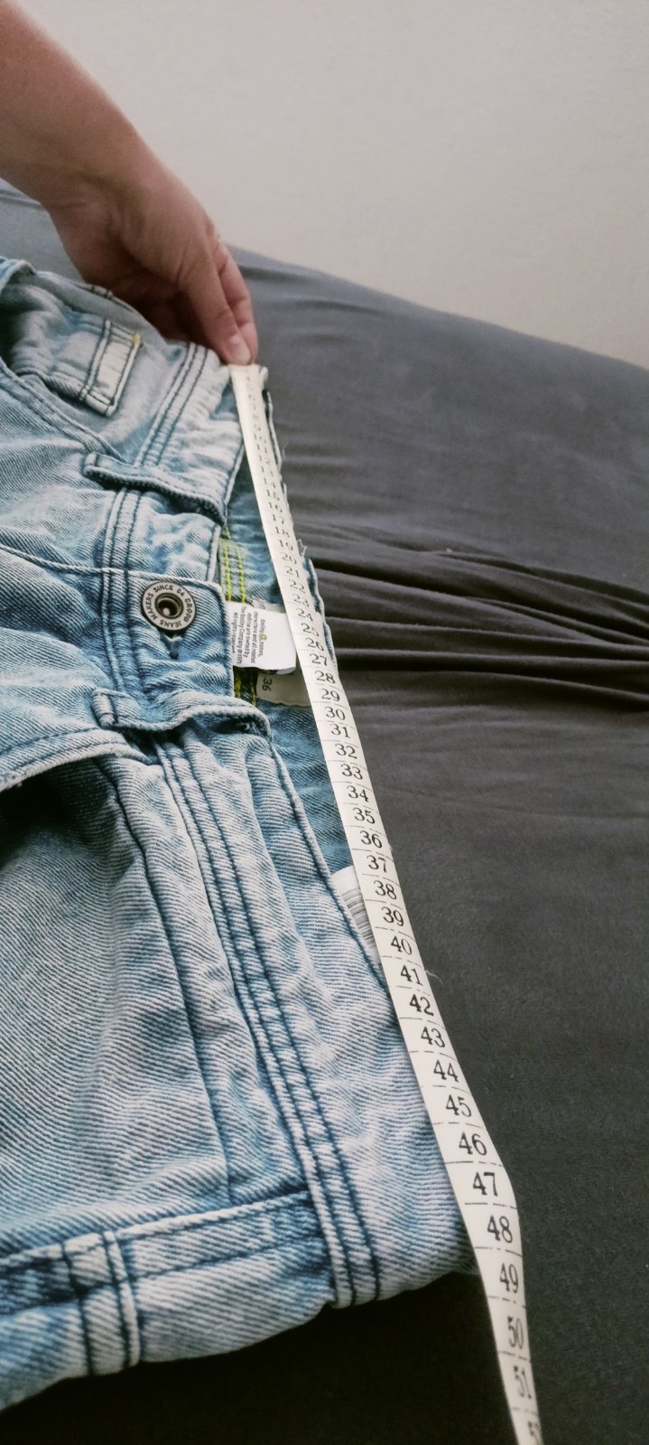 Posúvam pánske rifľové kraťase, veľkosť je odfotená, je to bavlna, taká pevná rifla, akurát na zadnom pravom vrecku mala čierna škvrna.