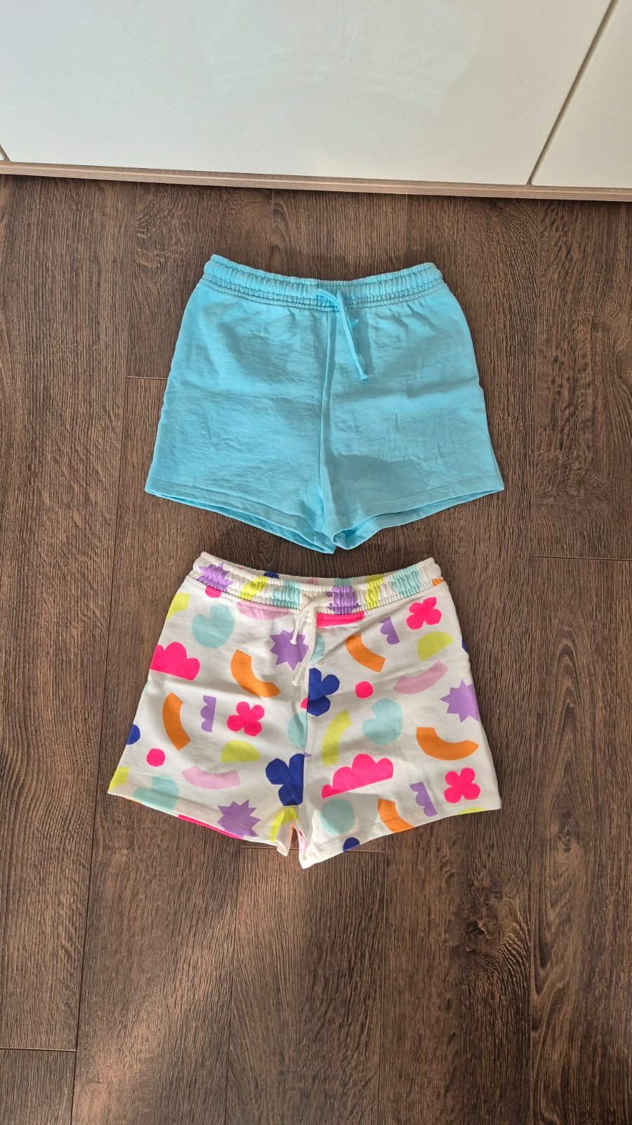 Kraťasy sú vo výbornom stave. Vzorované sú úplne nové, nenozené bez visačky. Veľkosť je 122, ale ponosíte aj dlhšie.
