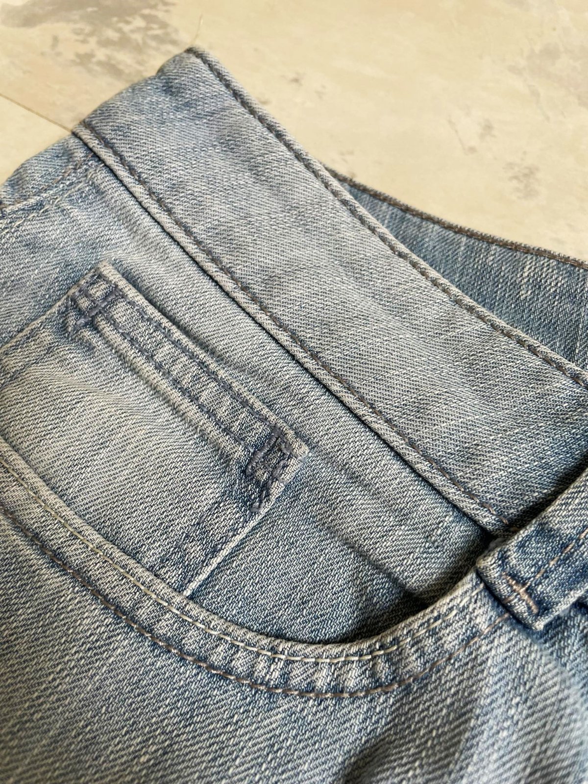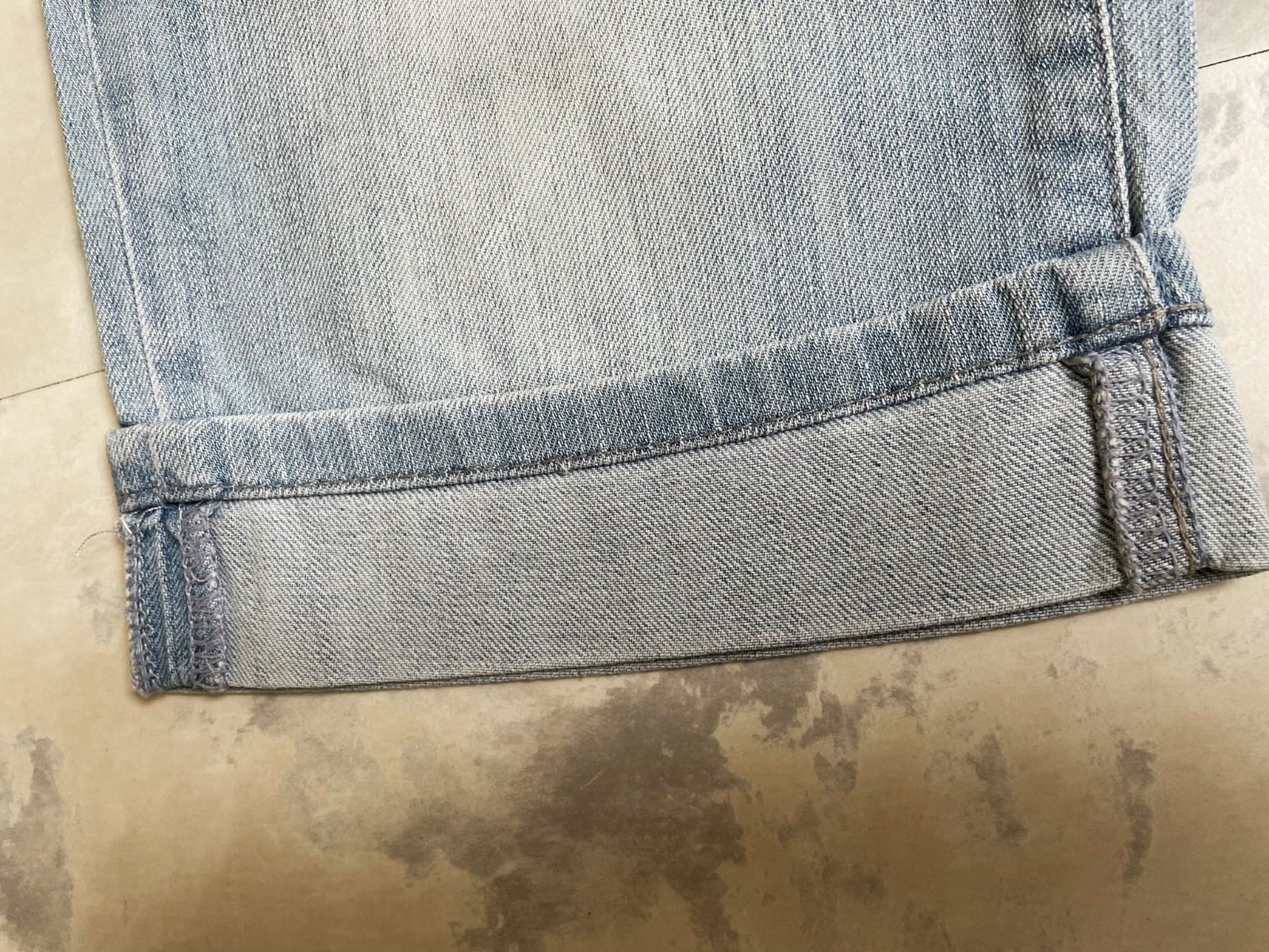 vkusné pekne sediace 3/4 s pevnou vyhrnutou manžetou,pri zapínaní je jemný flek,nie je to až tak vidno,kto nosí opasok - tak vôbec,ale upozorňujem - viď foto