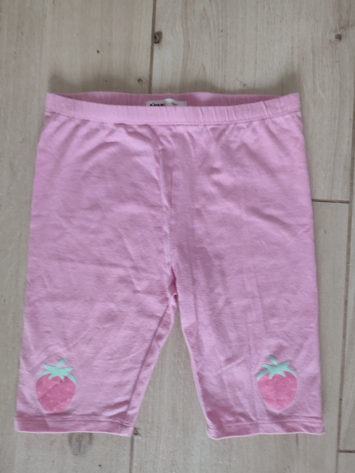 Biker shorts s aplikáciou stitcha, nosené, veľkosť 134. Aplikácia je poškodená