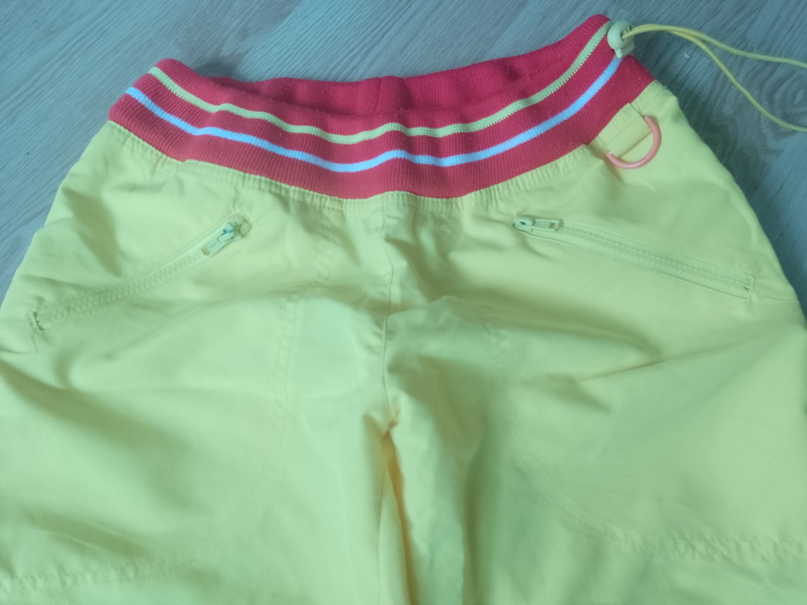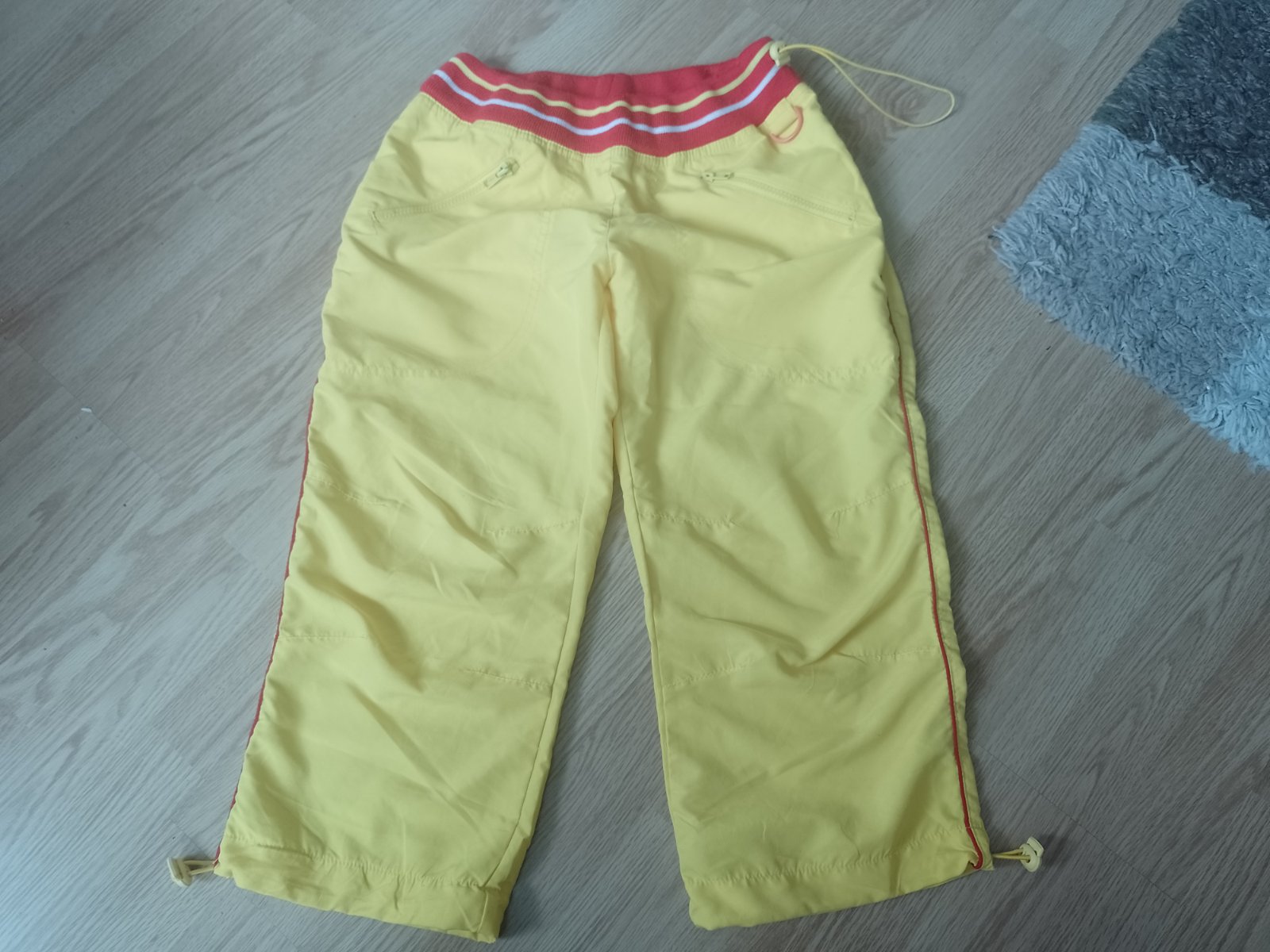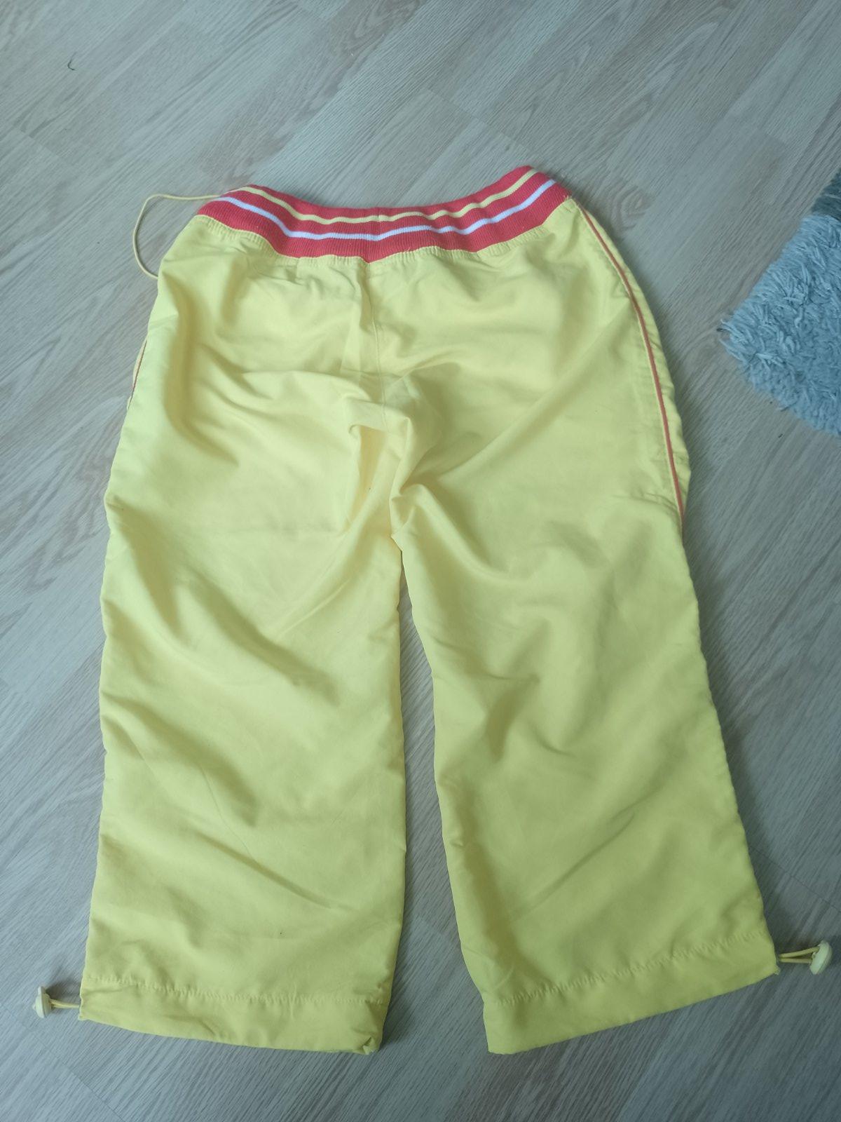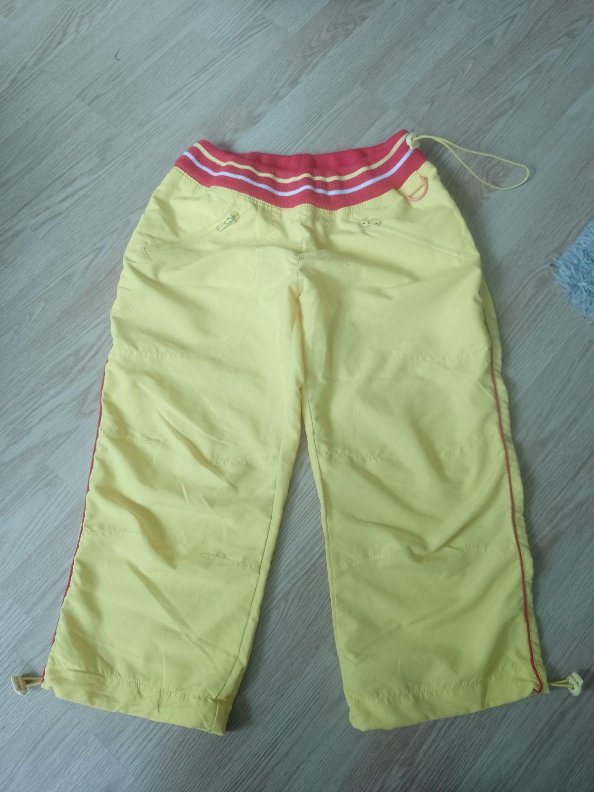 Ponukam športove trištvrt.nohavice su peknučke velkost S su žltej farby s červenym lemom v pase ,2vrecka,v pase su na gumu s cvokou daju sa stiahnut aj spodky su tak riešene pomeriame v pase 2krat 36 ale gumička je nastiahnutie a dlžka je 73cm cez stehno je širka 29cm krat 2 myslim že na ponosenie su suprove kuk foto +poštovne , dakujem kuk aj moj album