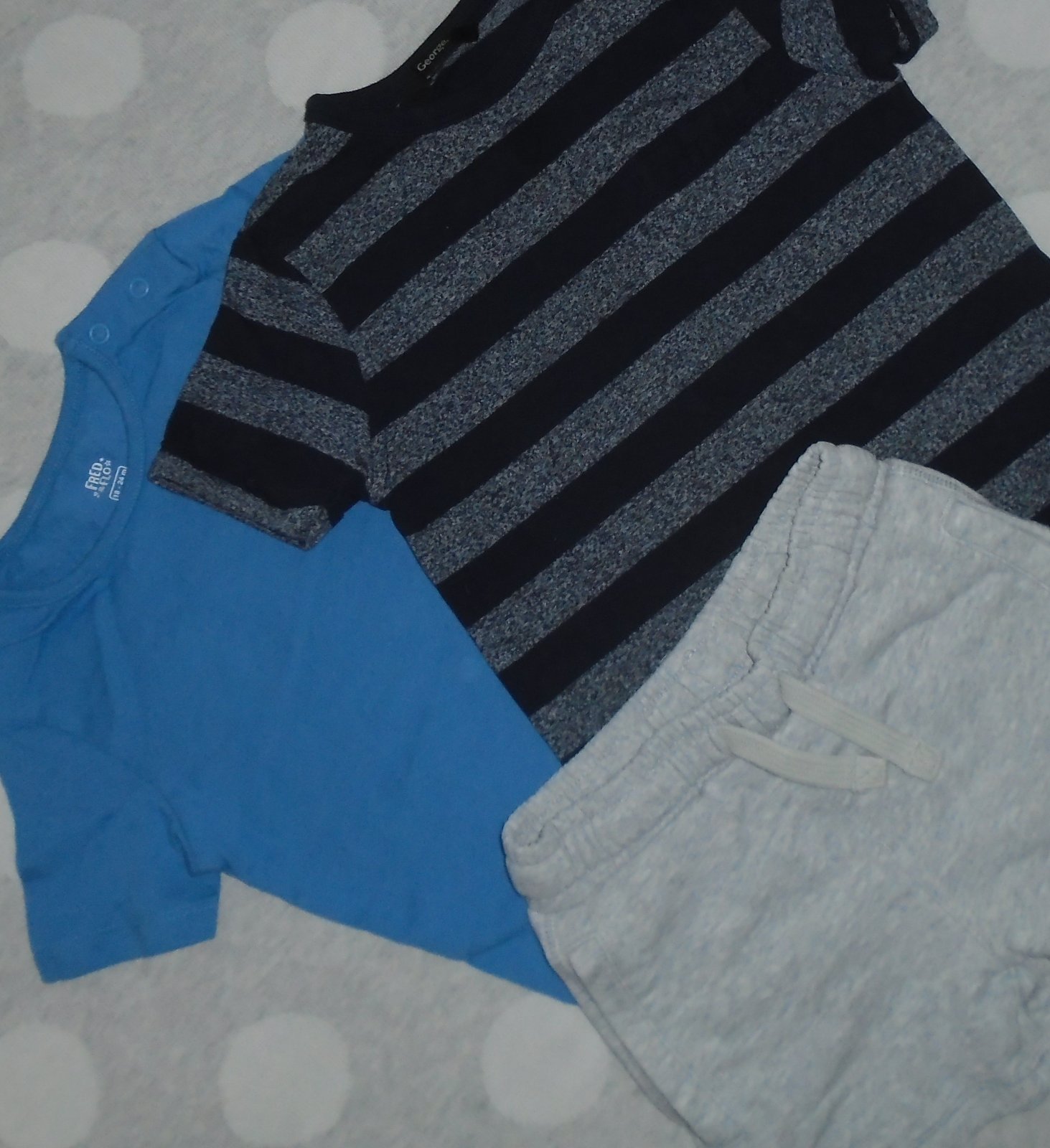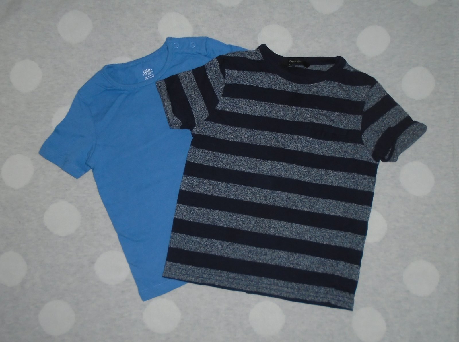 Veľkosť: na 2 až 3 roky, modré tričko 92 je skoro rovnake s prúžkovaným