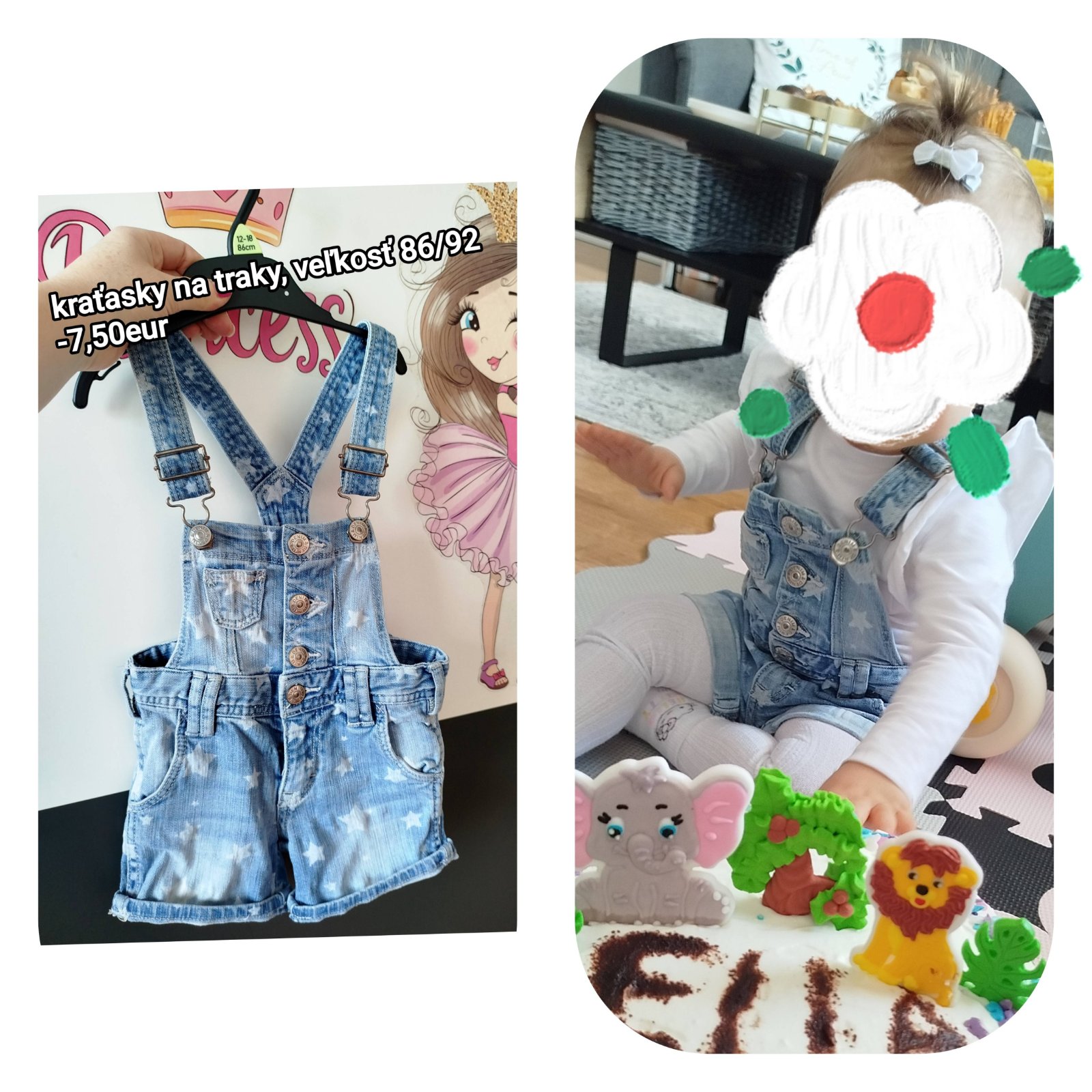 Predám nádherné riflové kraťasky na traky s hviezdičkami,top stav,nádherné sedia,veľkosť 86/92