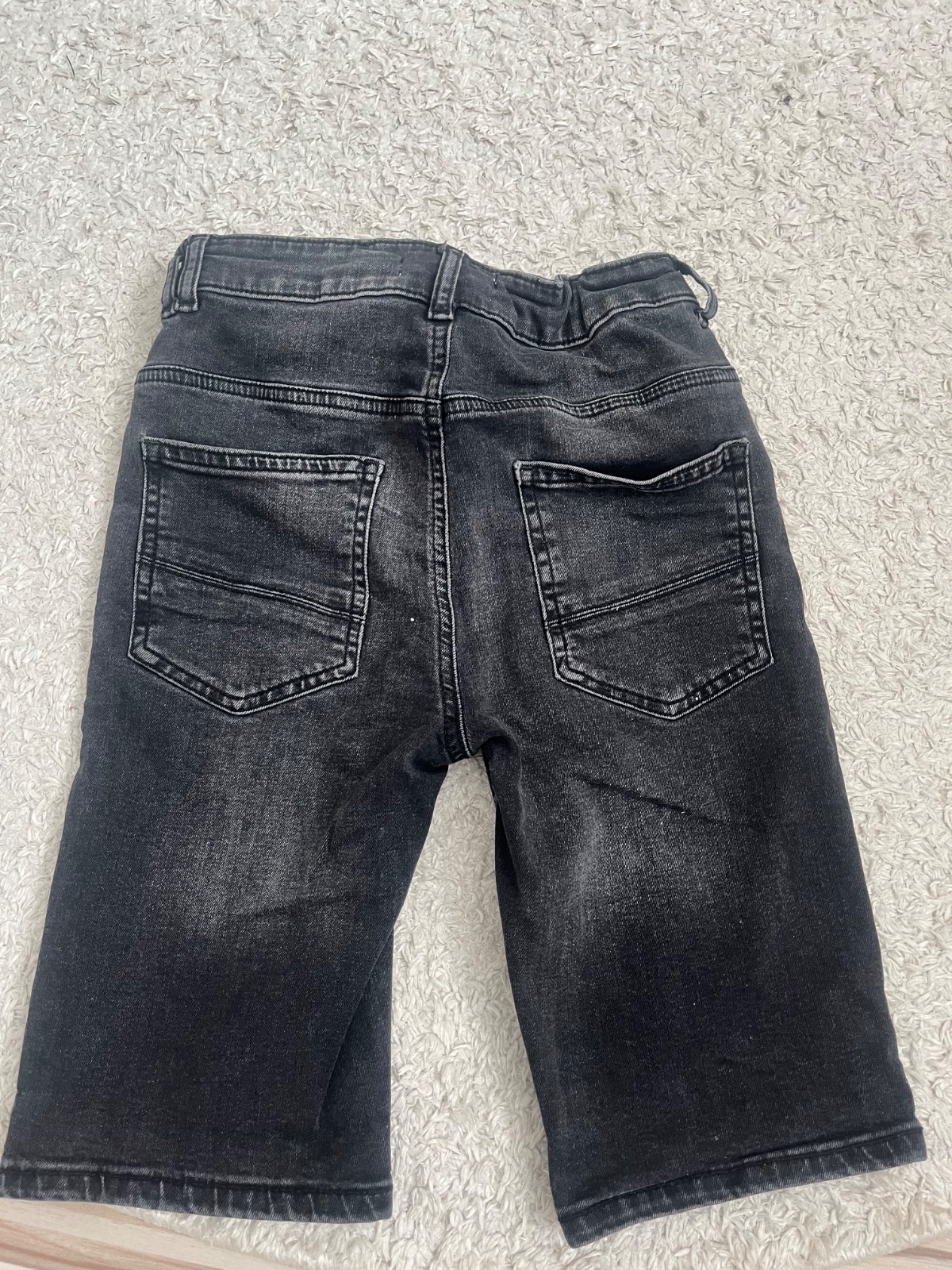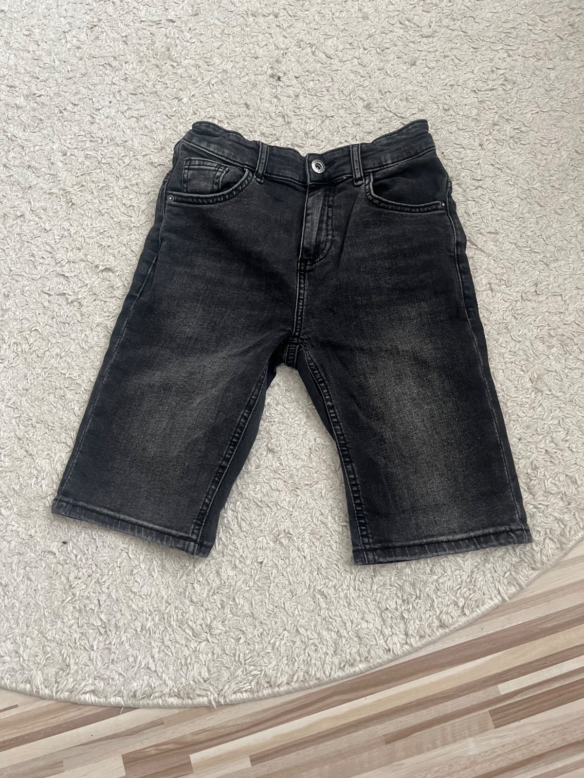 Nosené kraťase sú v dobrom stave. Je to tenšia rifľovina. Veľkosť píšu 152, ale môj syn s tou istou veľkosťou ich už neoblečie. Sú nepoškodené. Dĺžka 56 cm, v páse 36 cm.