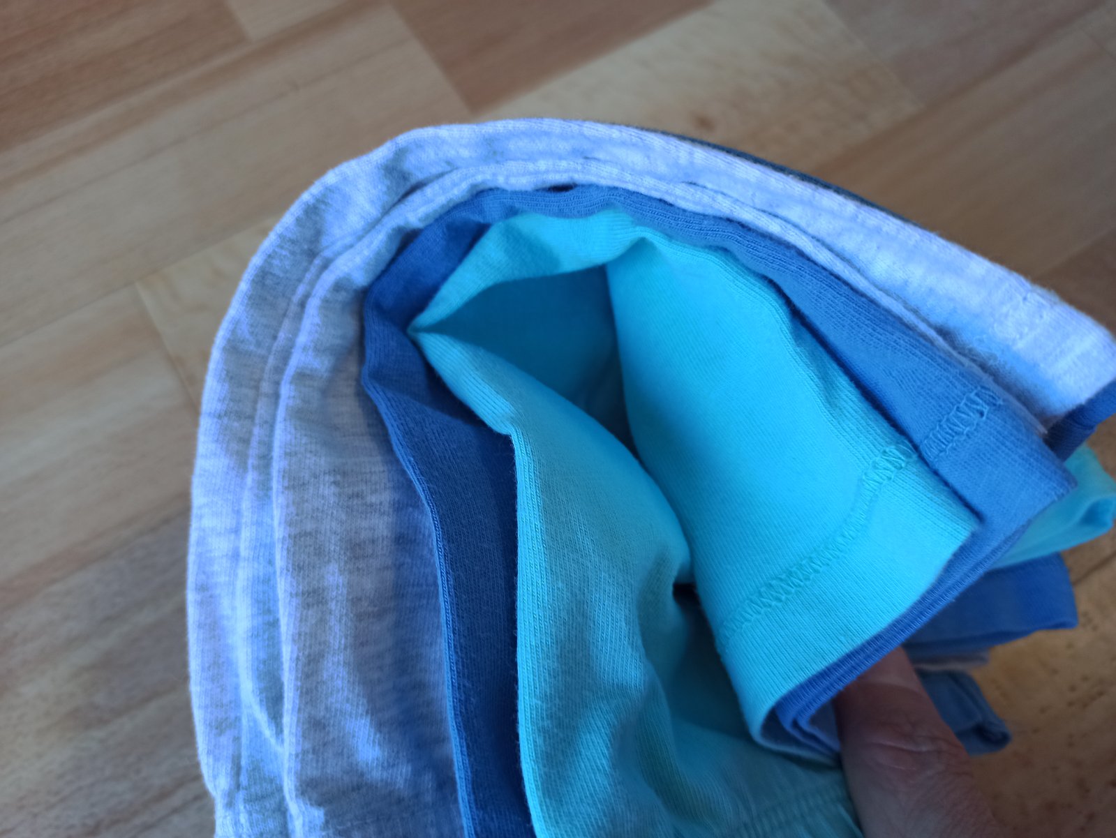 Modré sú 1-2krát oblečené, sivé zopár krát