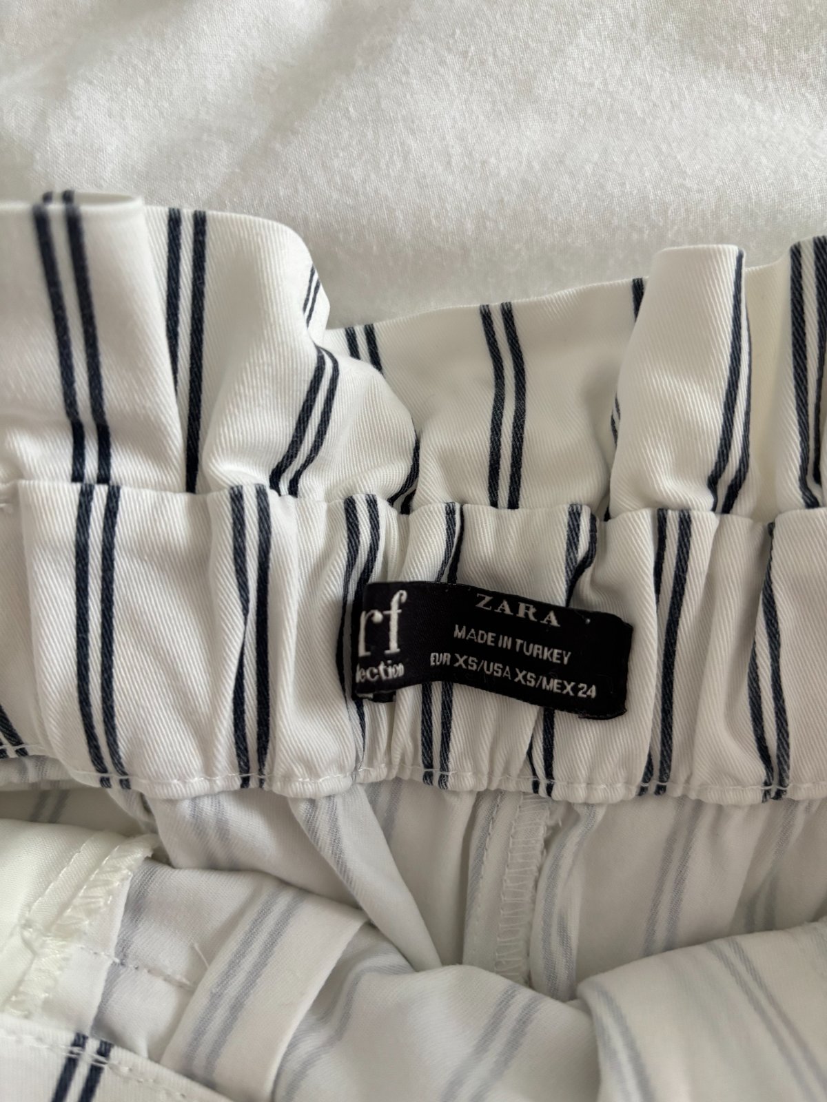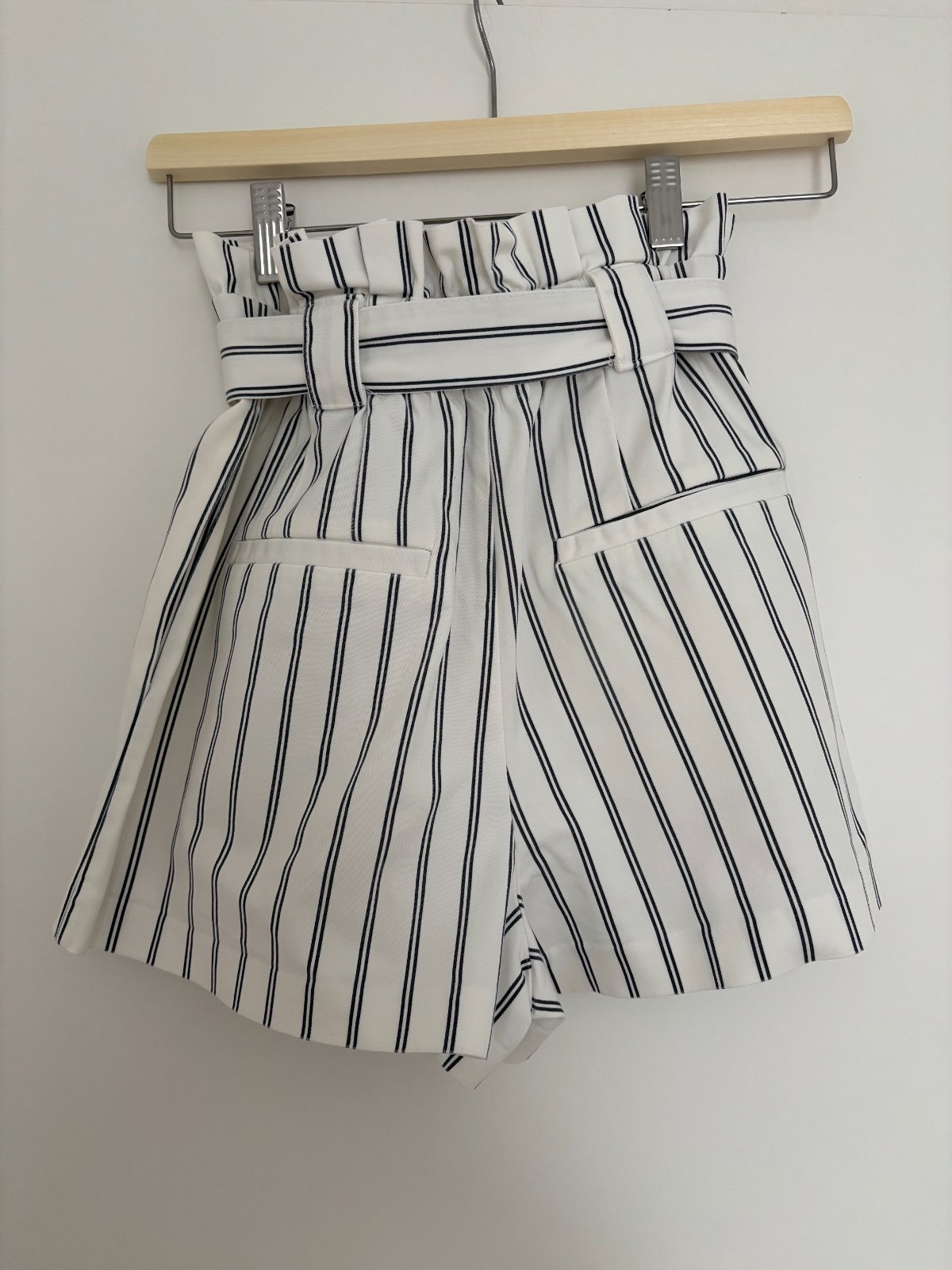 Pásikavé bielo-čierne šortky značky Zara s vysokým pásom, s opaskom, veľkosť XS, bez poškodení a znakov opotrobenia. Osobný odber je možný v BA a NR.