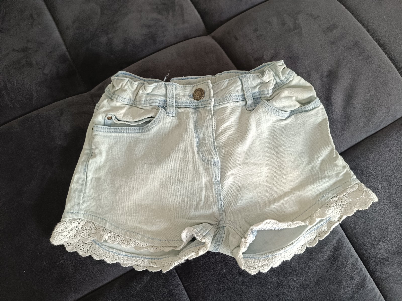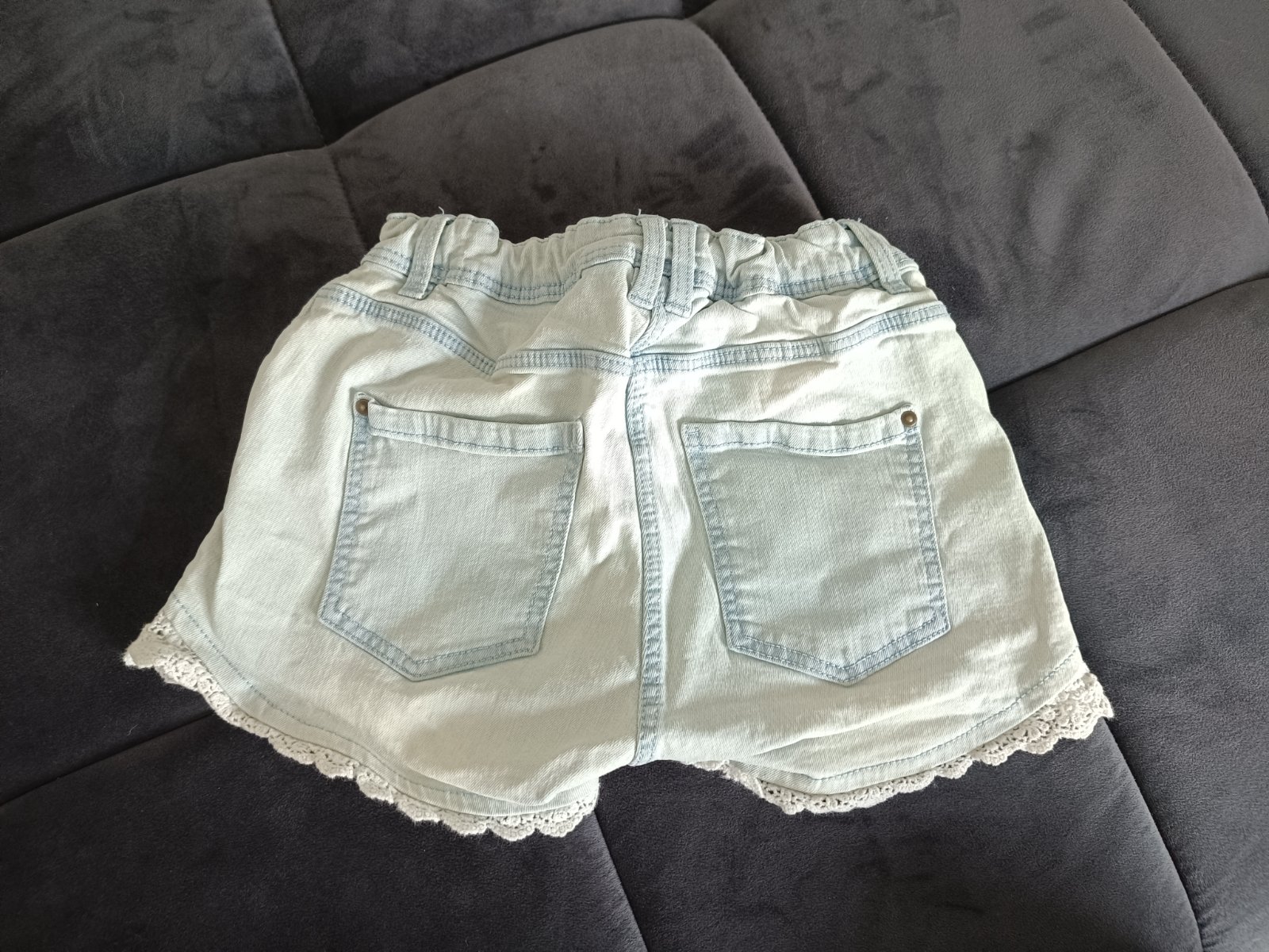 Predám riflové kraťasy, bez poškodenia, top stav. V páse je regulovateľná gumička.