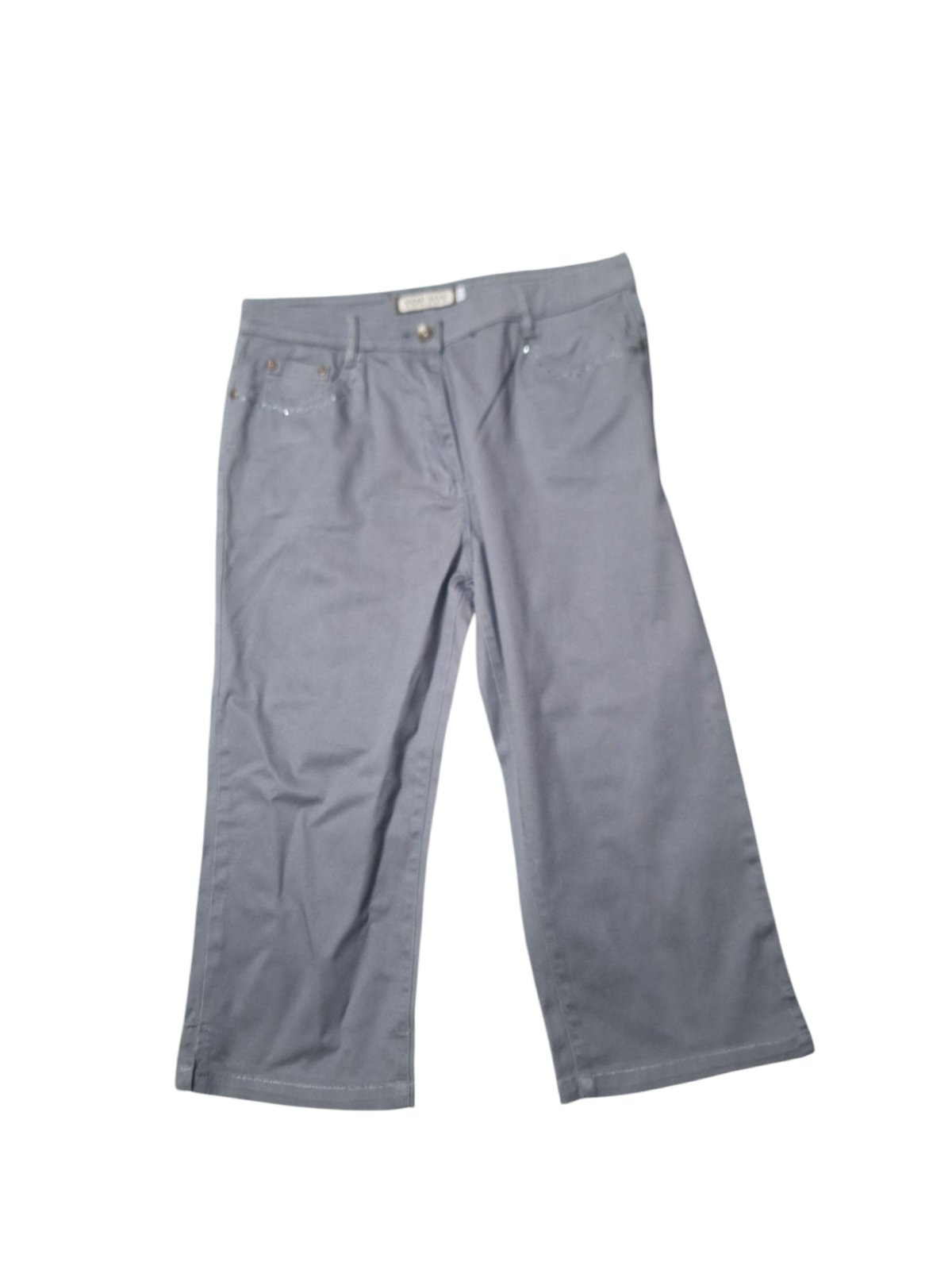 Dámske rifľové trištvrťáky značky You Joy. Zapínanie je vpredu na zips a gombík. Sú mierne elastické. Dĺžka je 75cm,obvod pása v kľude je 80cm,natiahnuté 82cm. kód 2330