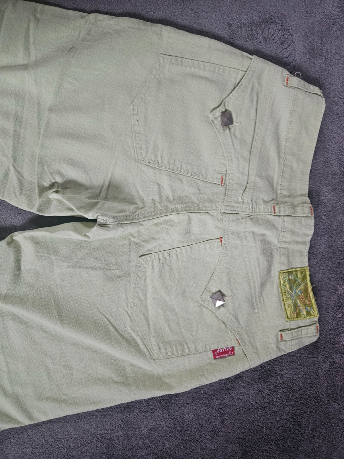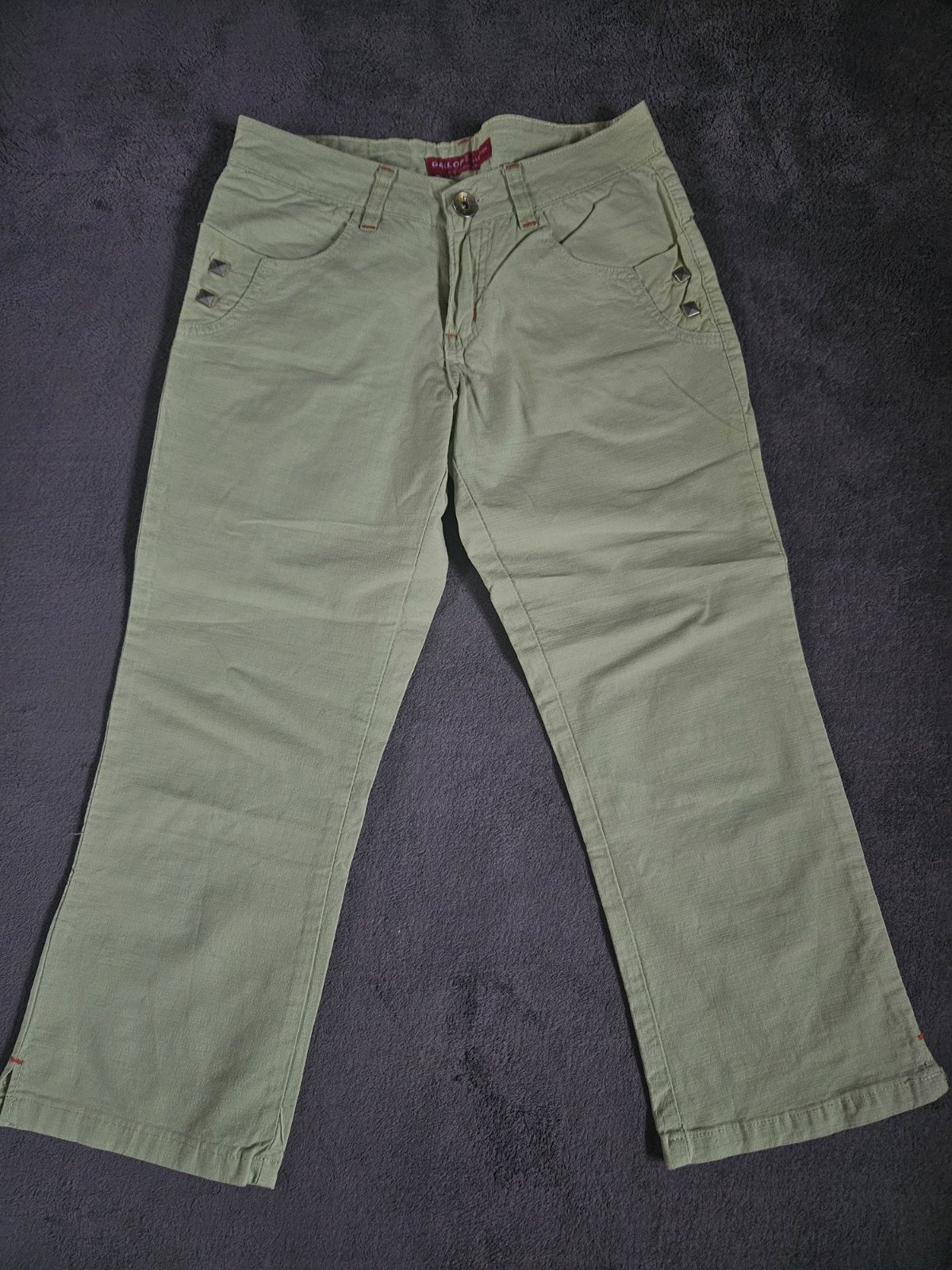 Super nohavky. Farba krajšia. Taká 🍏. Dĺžka zboku 69cm, obvod 2×33cm, max 2×45cm. Fliačky na vrecku, pofotene, zohľadnené v cene...