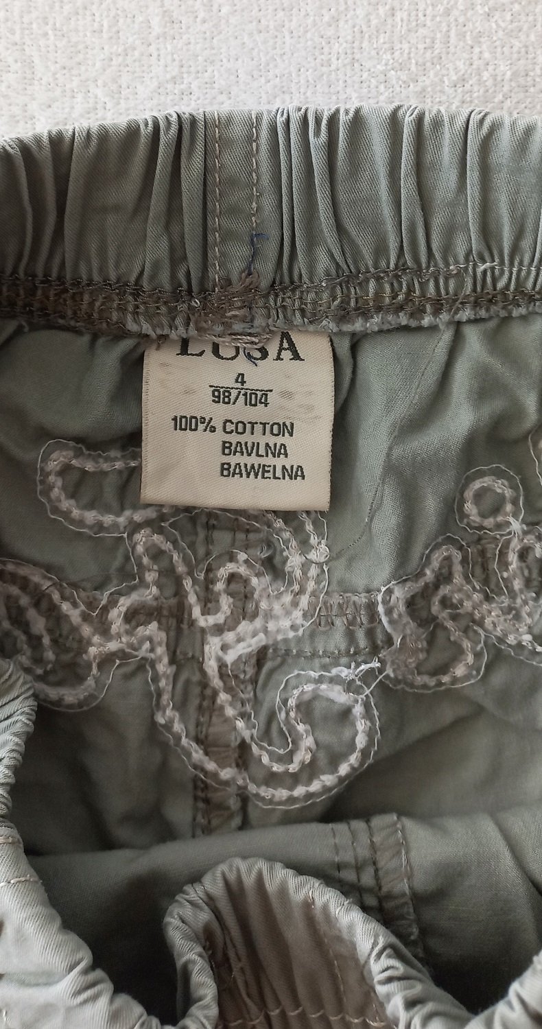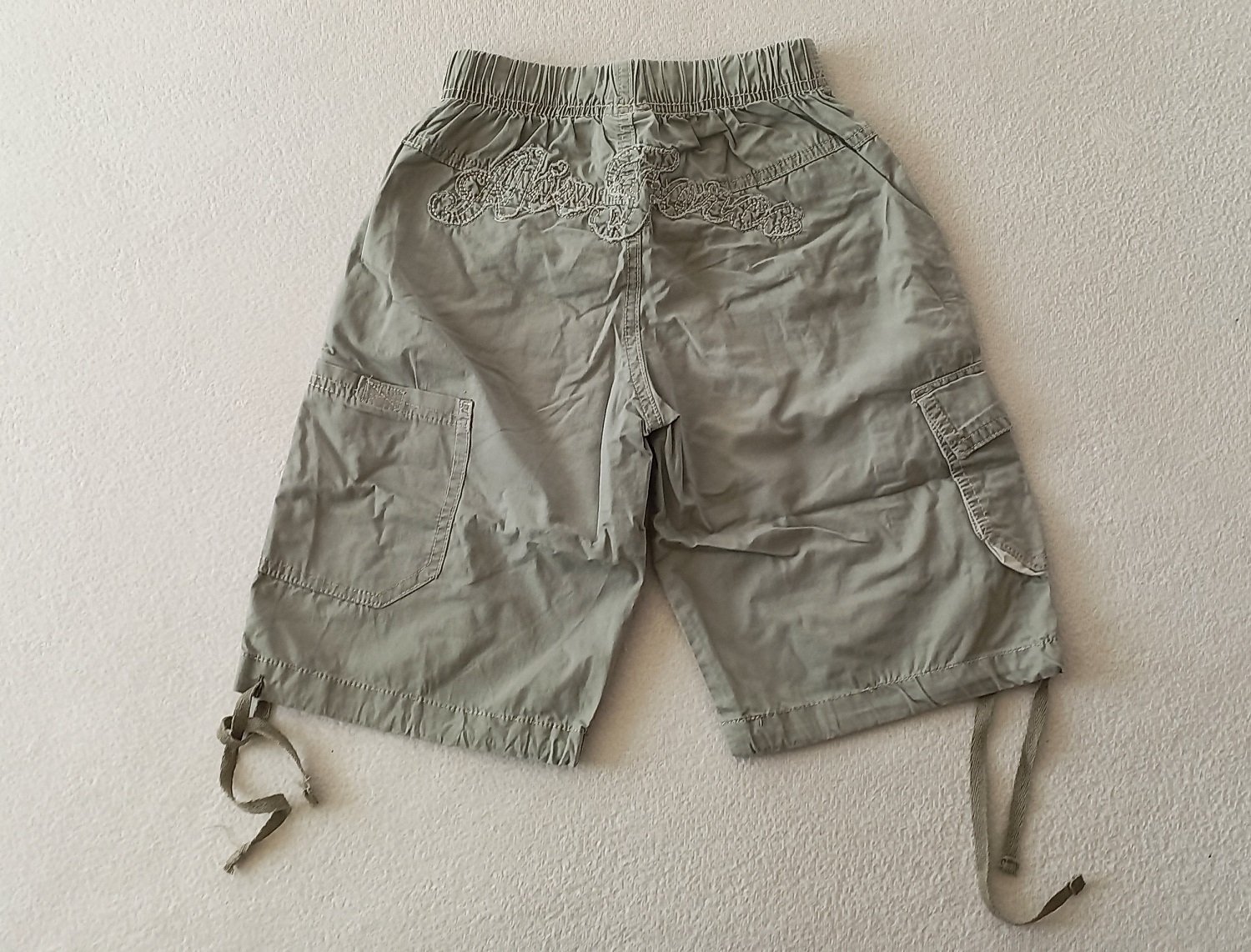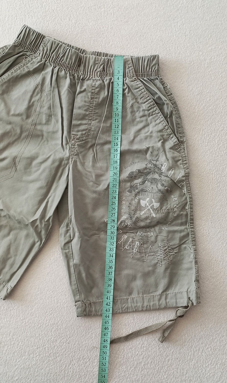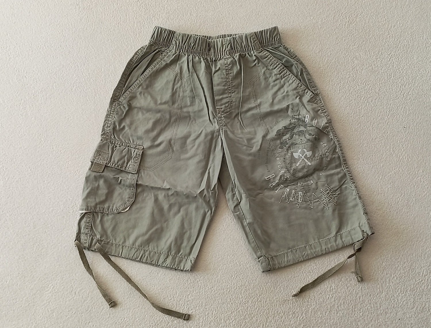 Tmavošedé až khaki letné krátke nohavice, značka Lusa, veľkosť 98/104. Rozmery sú na fotkách, 100% bavlna. Nosené jedno leto, nepoškodené. Máme viacero detských vecí, môžete si zostaviť vlastný balíček. Pri kúpe viac vecí zľava.