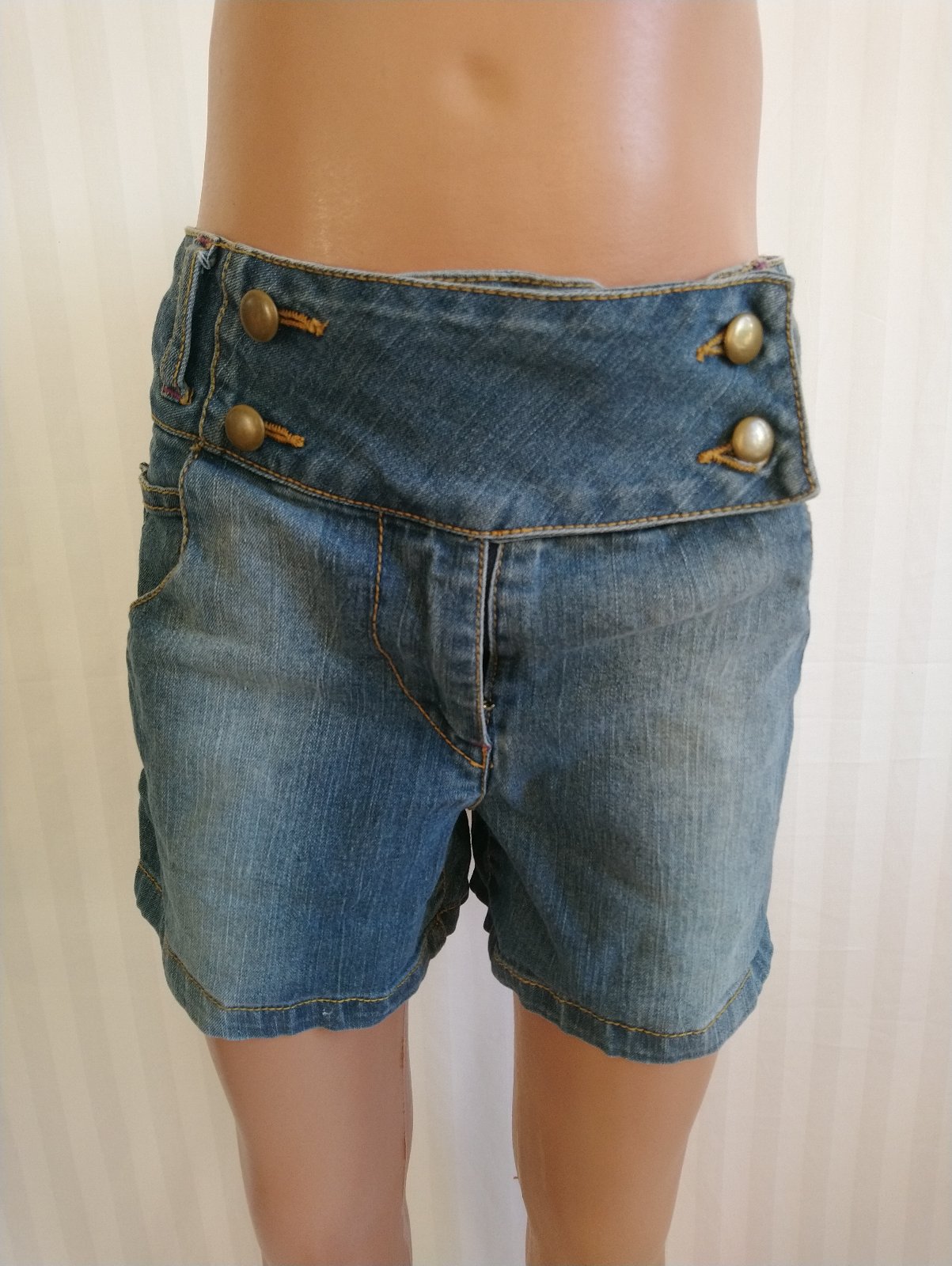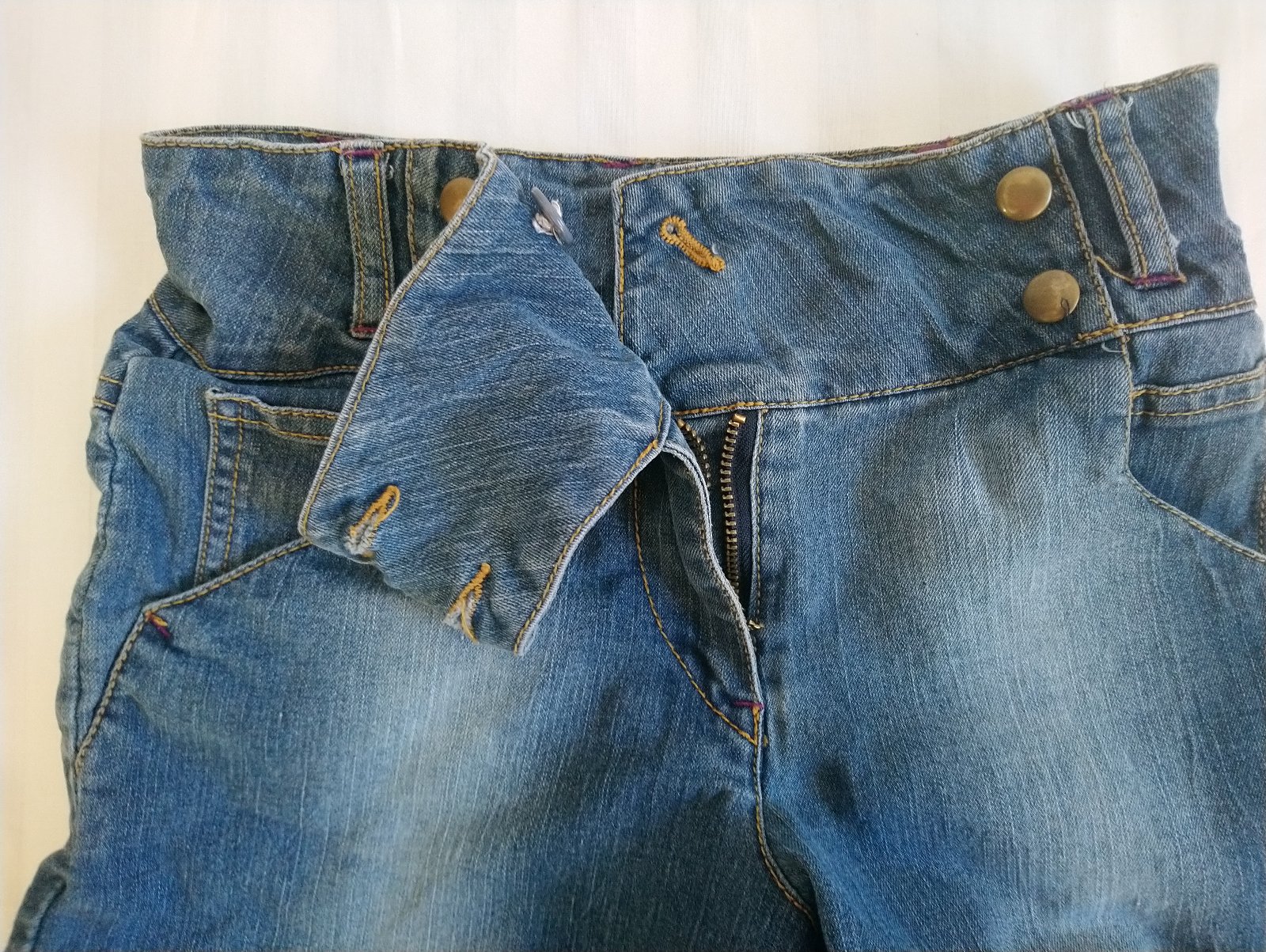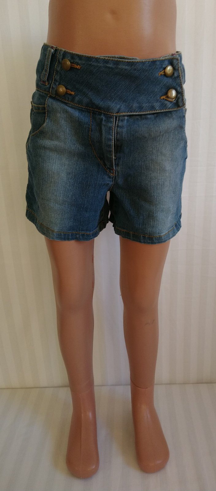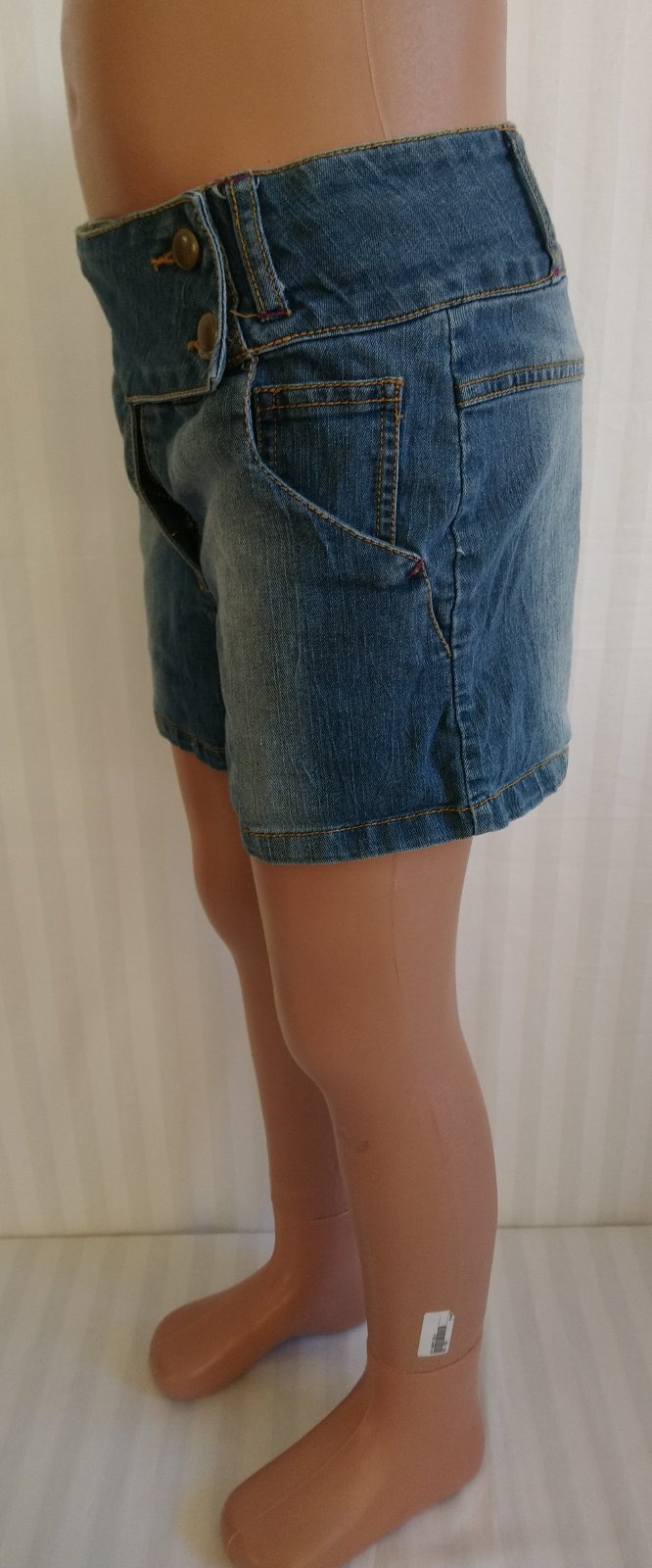 dievčenské elastické modré riflové kraťasy, vpredu vrecká, tenké, nastaviteľná gumička na šírku v páse zvnútra,