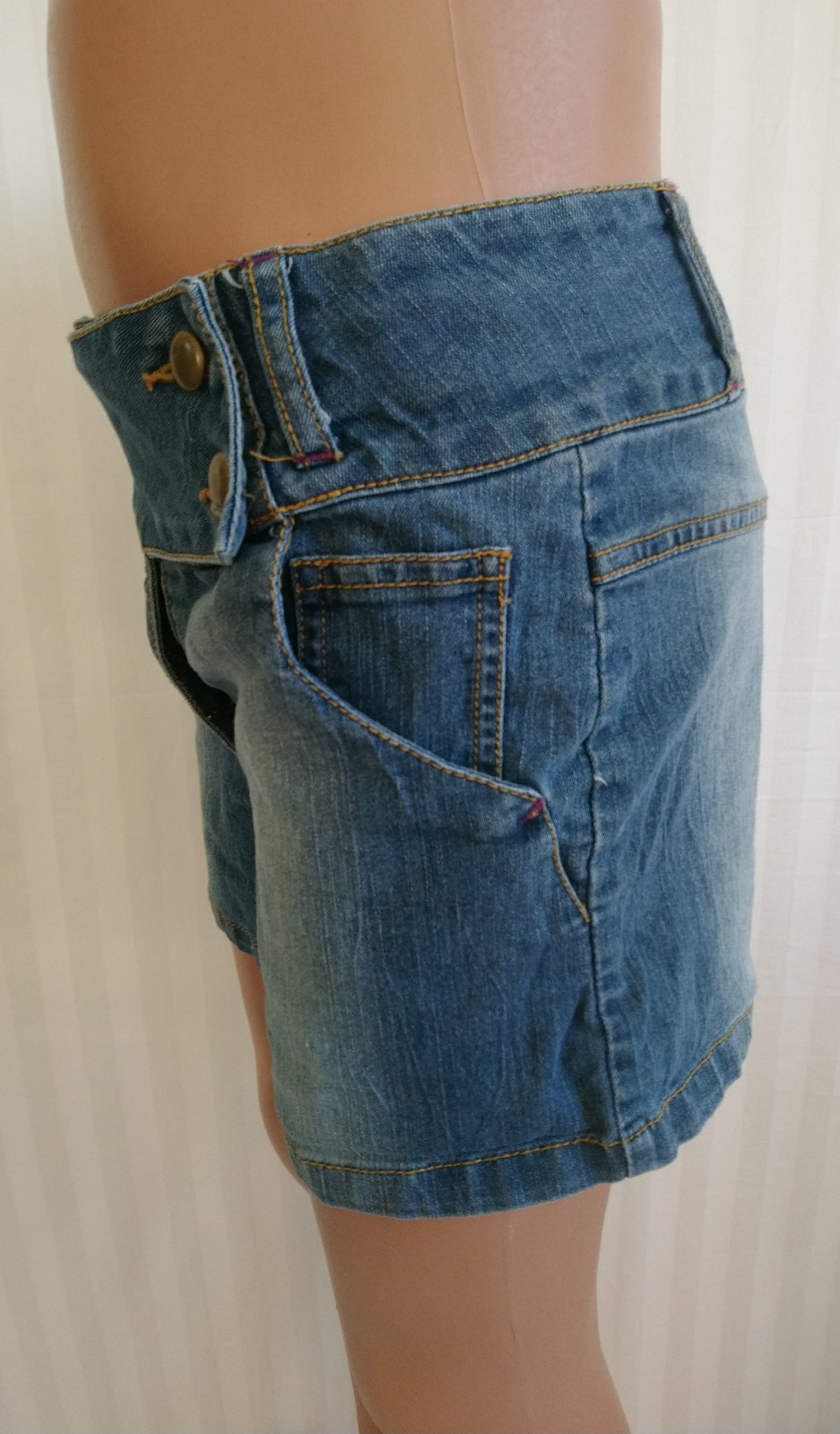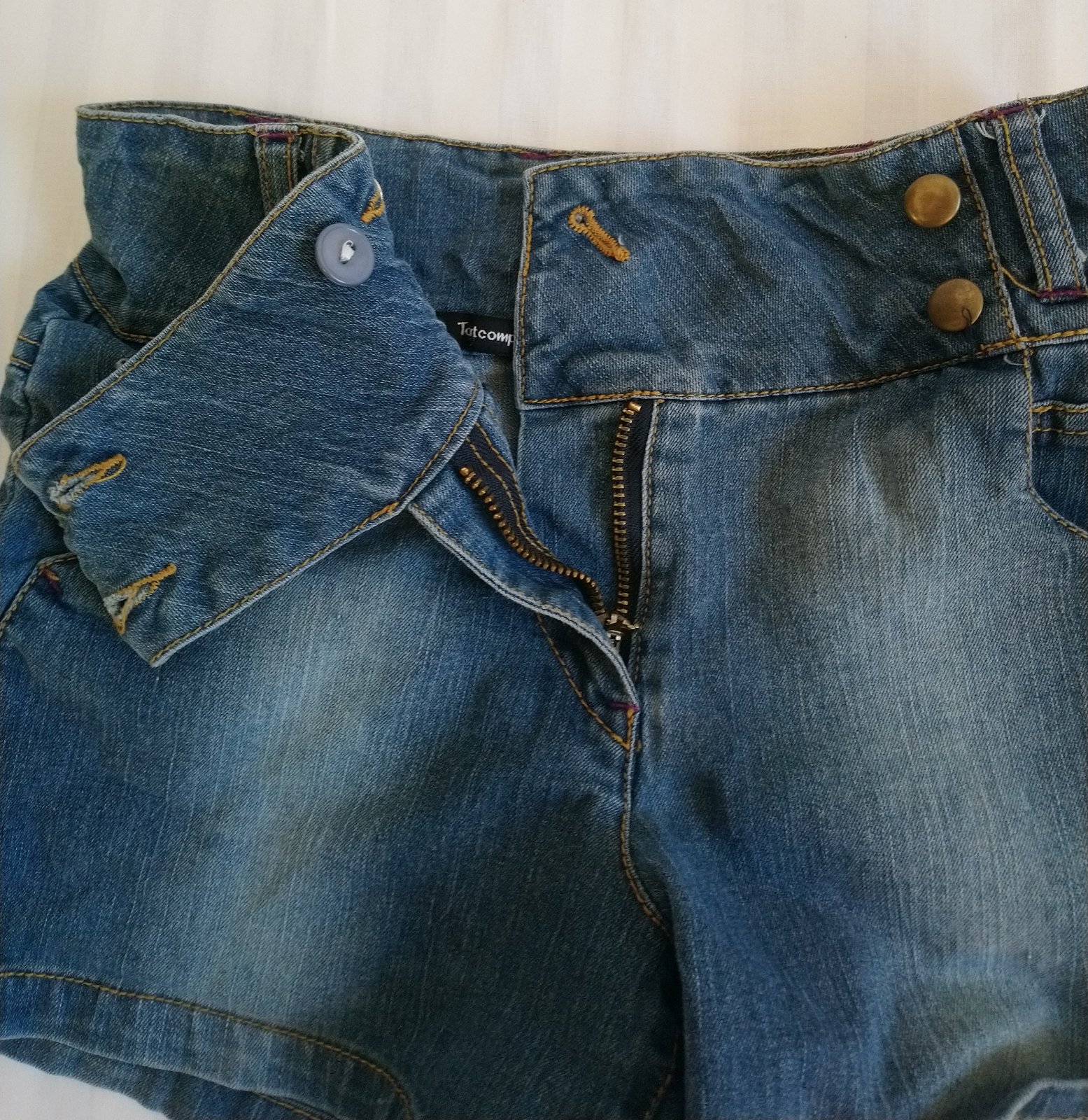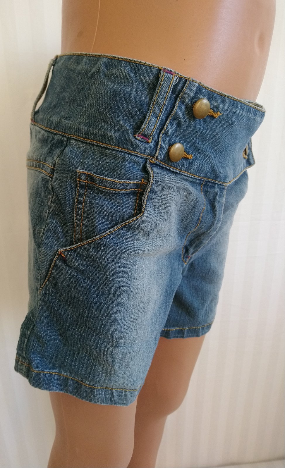 dievčenské elastické modré riflové kraťasy, vpredu vrecká, tenké, nastaviteľná gumička na šírku v páse zvnútra,