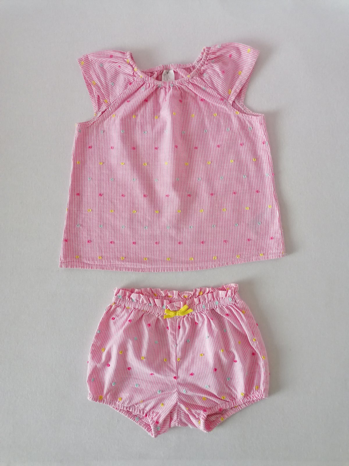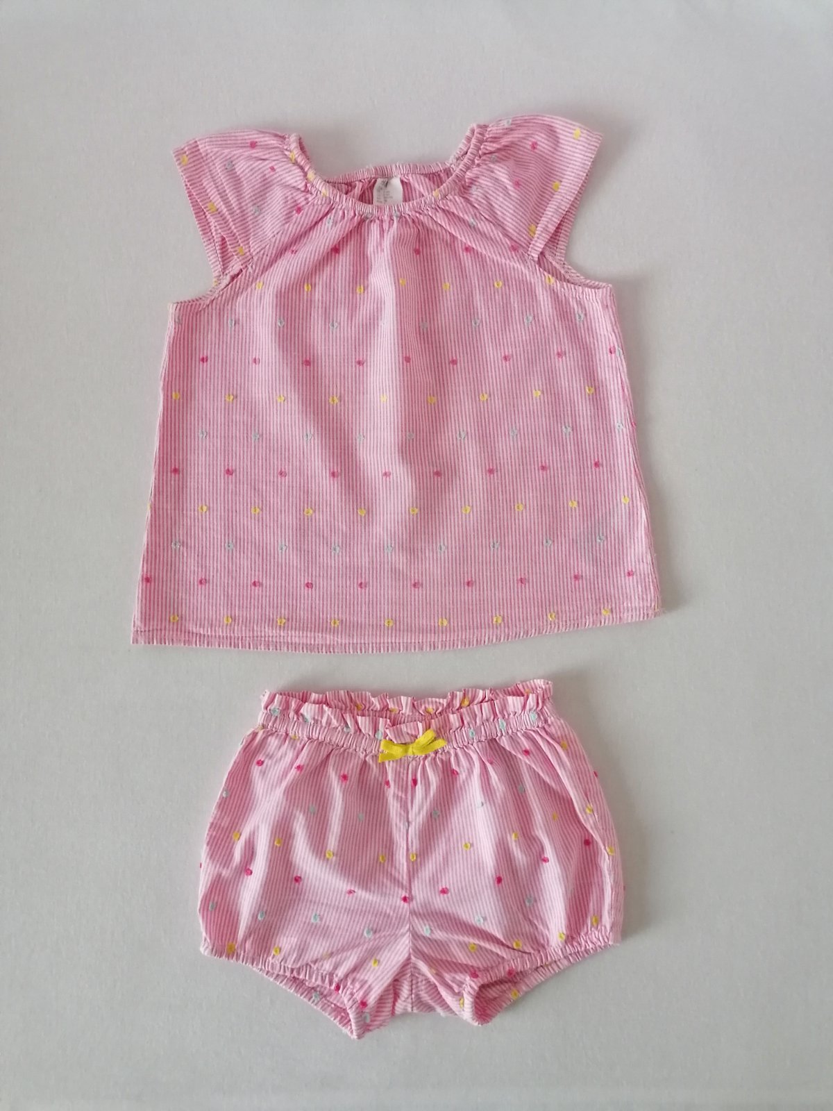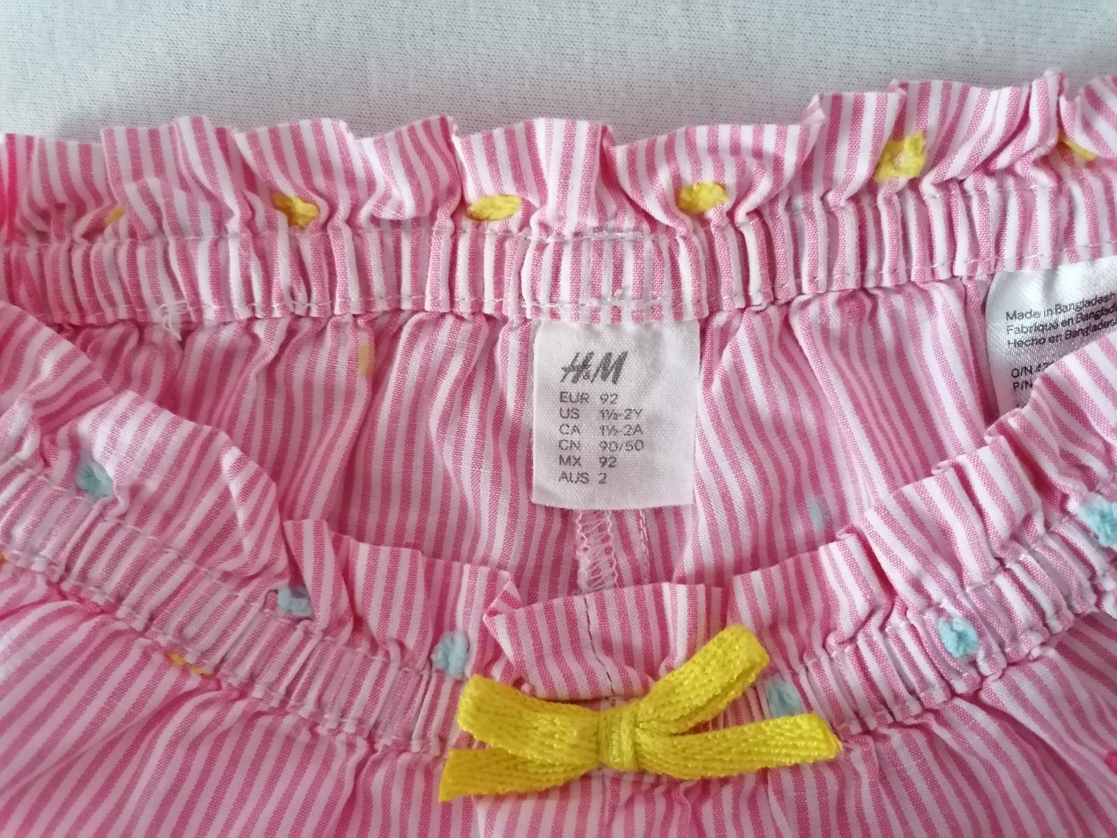Roztomile šortky, bielo-ruzove. Velkost 92 - sedi na 92/98. Vyborny stav. Mame k sortkam aj tuniku v rovnakom dizajne (kuk osobitny inzerat), cize sa to moze nosit ako suprava.