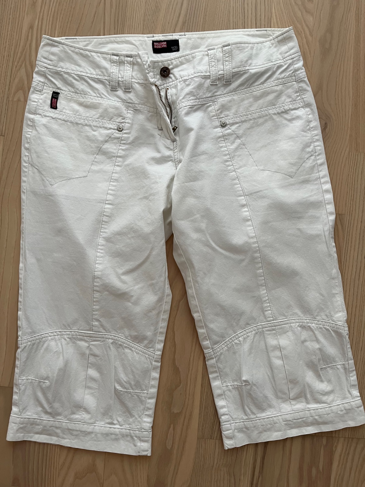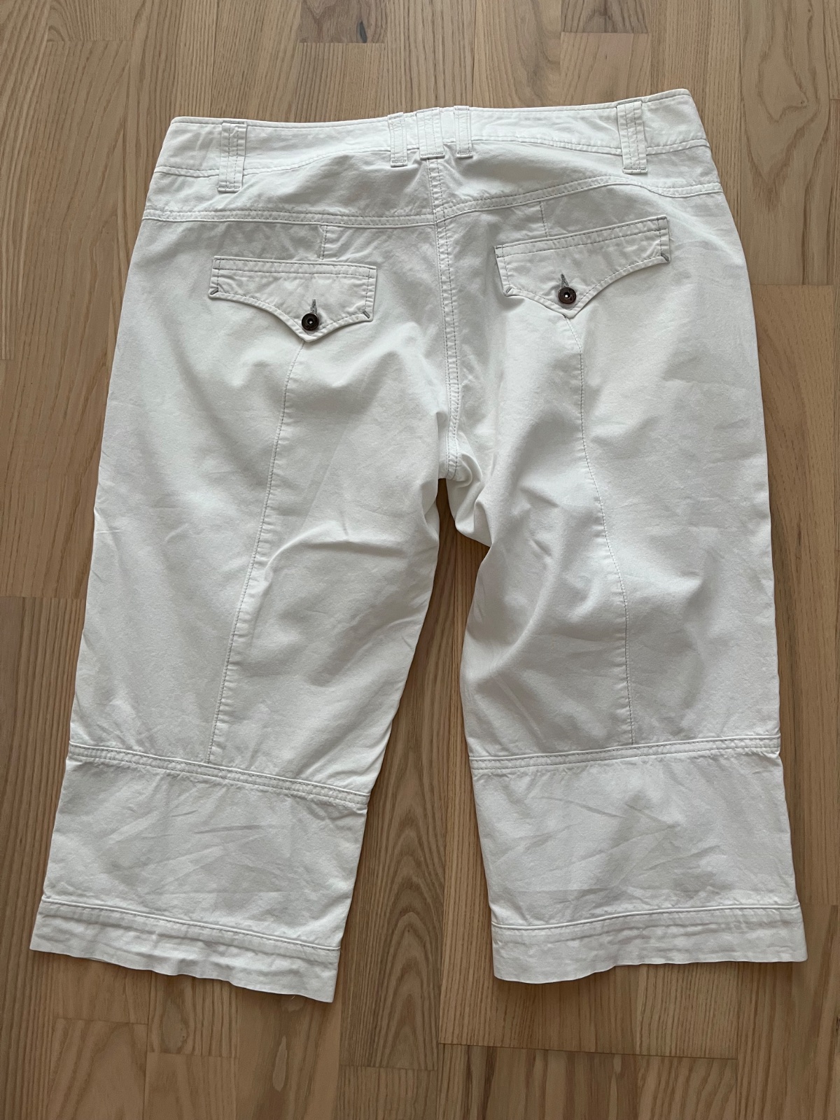 Predám biele letné nohavice pod kolená, minimálne nosené, ako nové, vpredu 2 vačky, vzadu falošné. V prípade potreby premeriam.