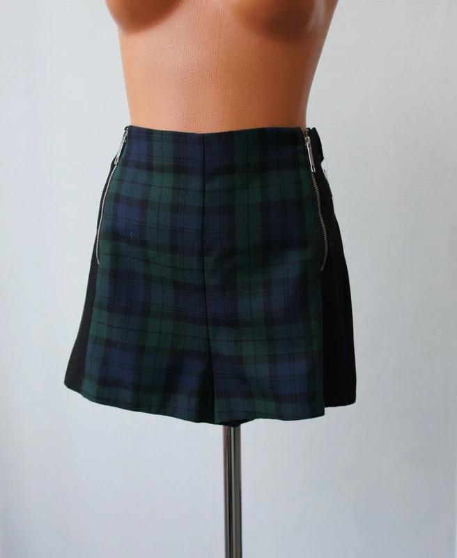 Predám štýlovú dámsku sukňu v nadčasovom tmavomodro-zelenom károvanom vzore. Sukňošortky máju elegantný áčkový strih, ktorý krásne zvýrazní postavu, a praktické zipsy po bokoch pre jednoduché obliekanie aj moderný vzhľad. Skvele sa kombinuje s pančuchami, čižmami aj jednoduchým svetrom alebo blúzkou. Nadčasový kúsok, ktorý nevyjde z módy.