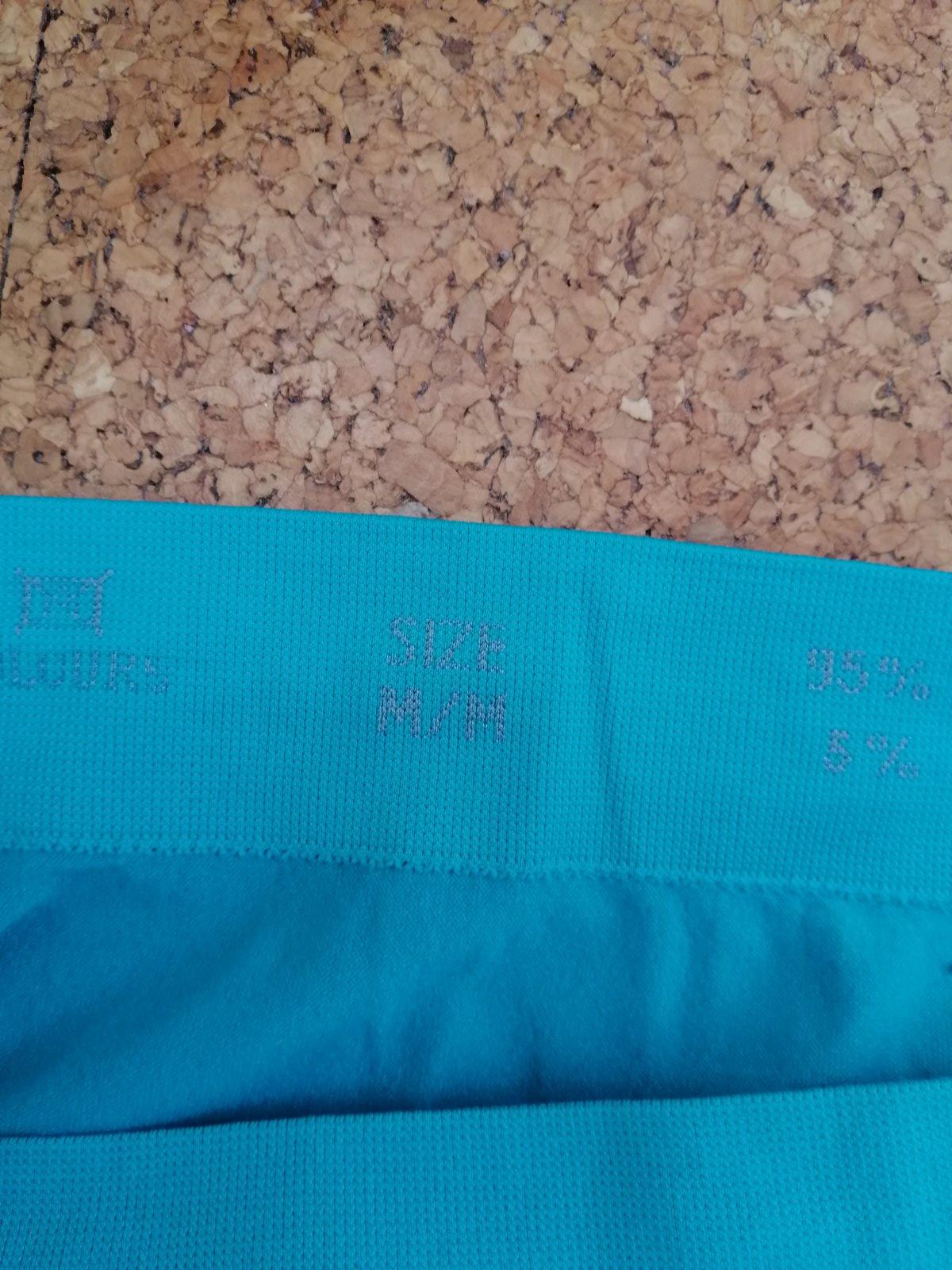 Veľmi elastické. Tyrkysovomodrá farba. Mám rovnaké aj v čiernej farbe. Symbolická cena,lebo sú povolené nitky v medzinoži. Kuk všetky moje inzeráty, rada s vami veci vymením 🙂