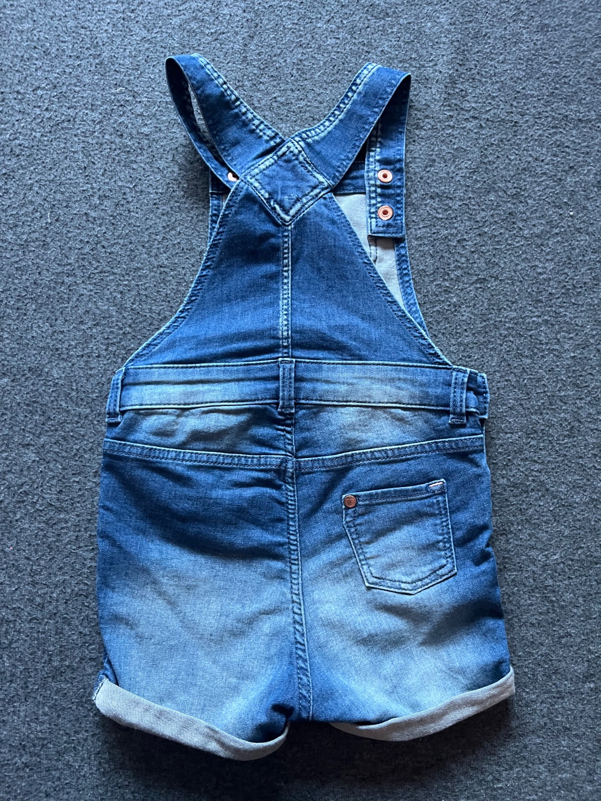 Len oprane rifľové kraťasy na traky. Veľkosť 86