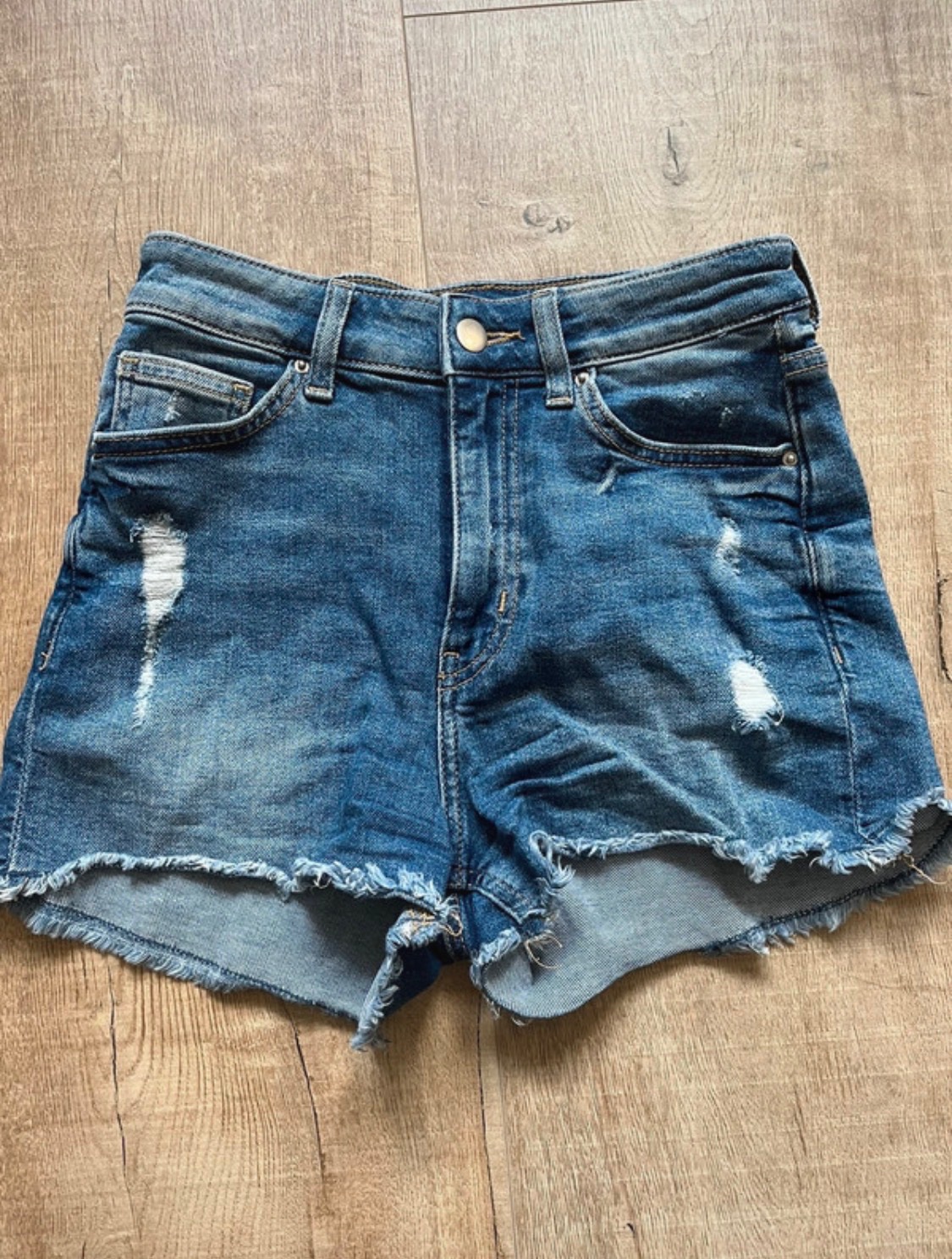 Vzorované riflové šortky H&M 🖊️ Cena: 3,40 € 🖊️ Veľkosť: S (36) 🖊️ Materiál: bavlna, elasten 🖊️ Rozmery: pás: 2x36 cm, celková dĺžka: vpredu: 25 cm, vzadu: 31 cm @S