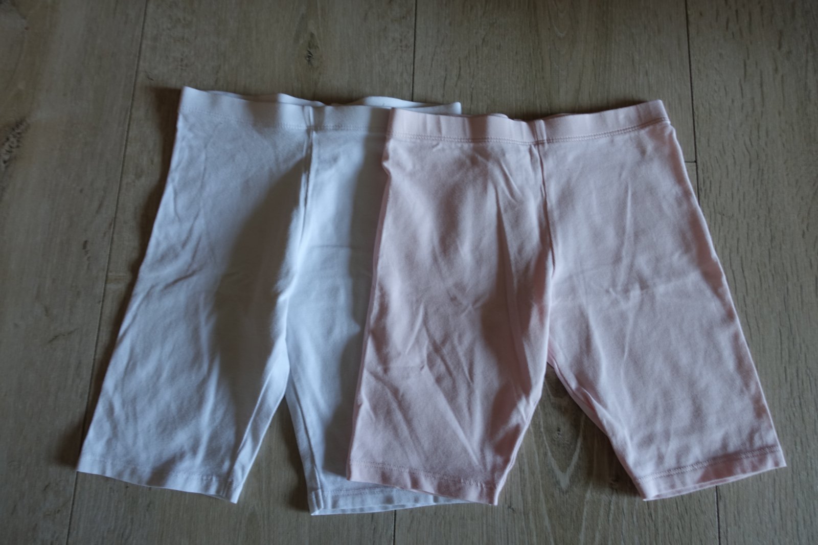 Predám 2 krásne kraťasky vo farbe biela a pastelovo ružová. Mali sme ich 1-2x, žiaľ hneď po prom opratí trošička vidno pri naklonení chĺpoček z prania, ale nie sú žmolkavé. Ponosiť sa určite ešte dajú. Dĺžka ružových je 31 cm a šírka pásu v kľude je 24,5 cm. Dĺžka bielych je 33 cm a šírka pásu v kľude je 25 cm. Predávam iba spolu, takto boli spolu aj kupované. (G)