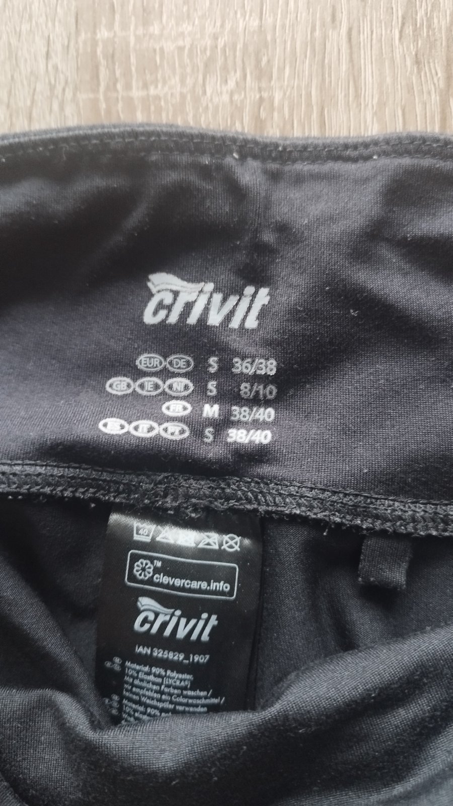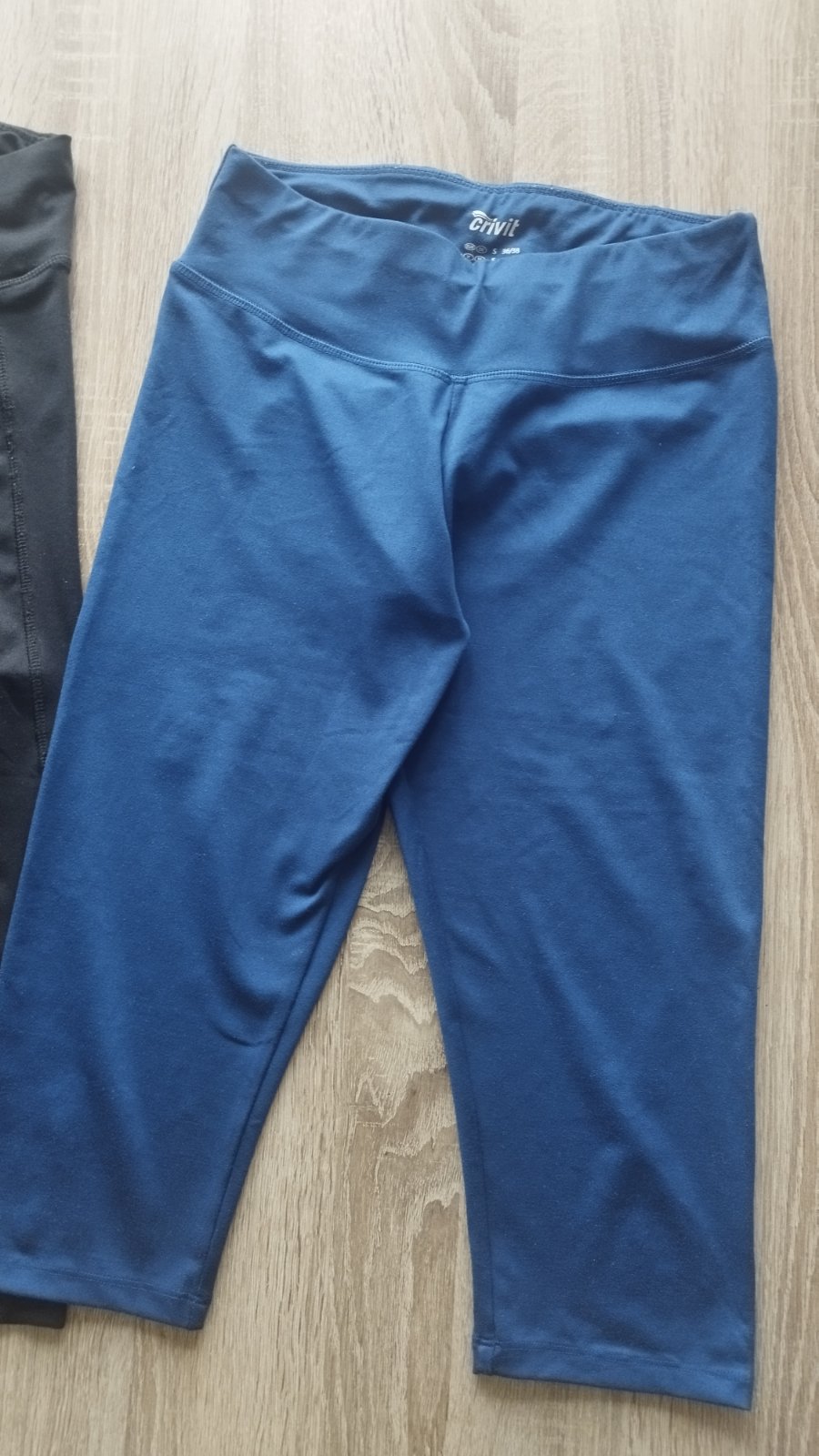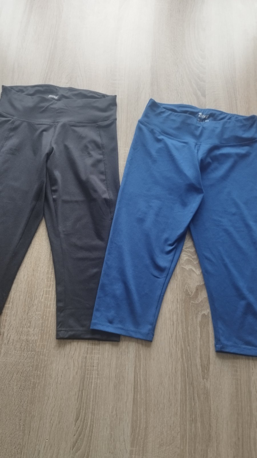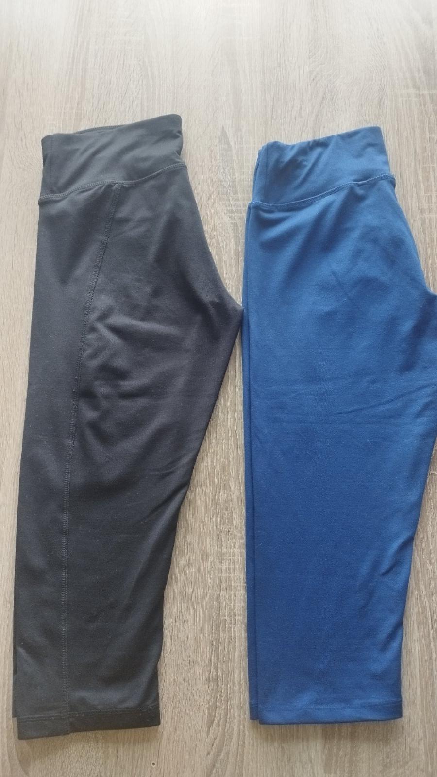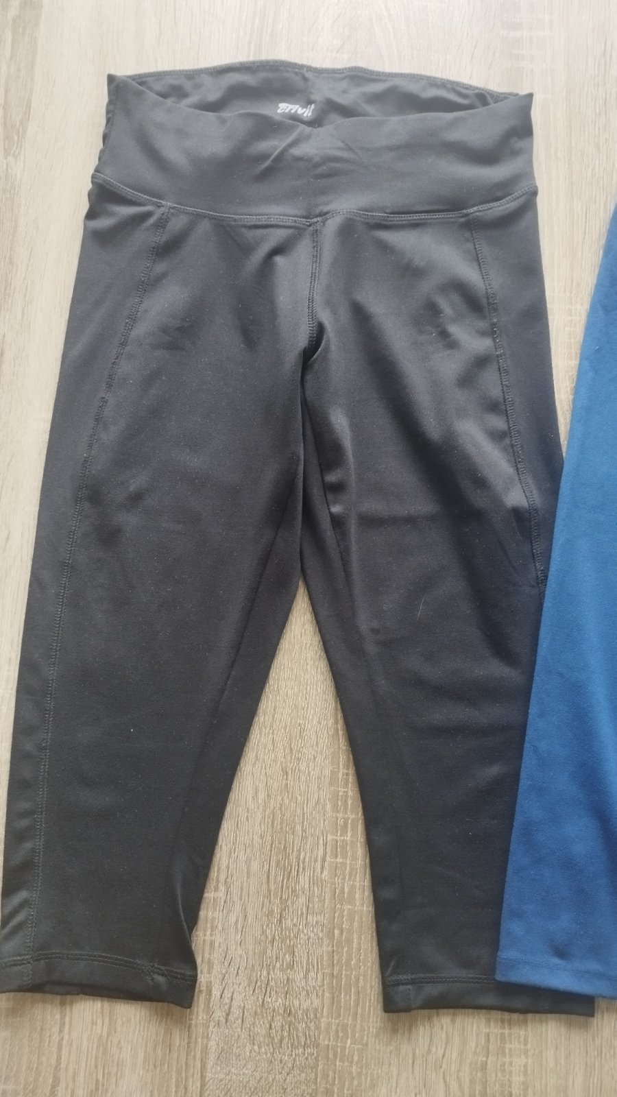 3/4 funkčné legíny, veľkosť S. Čierne a tmavomodré - pás meraný v kľude 2x33cm, celková dĺžka 66cm, vnútorná dĺžka 45cm. Dobrý nosený stav. Bez poškodenia. Len spolu
