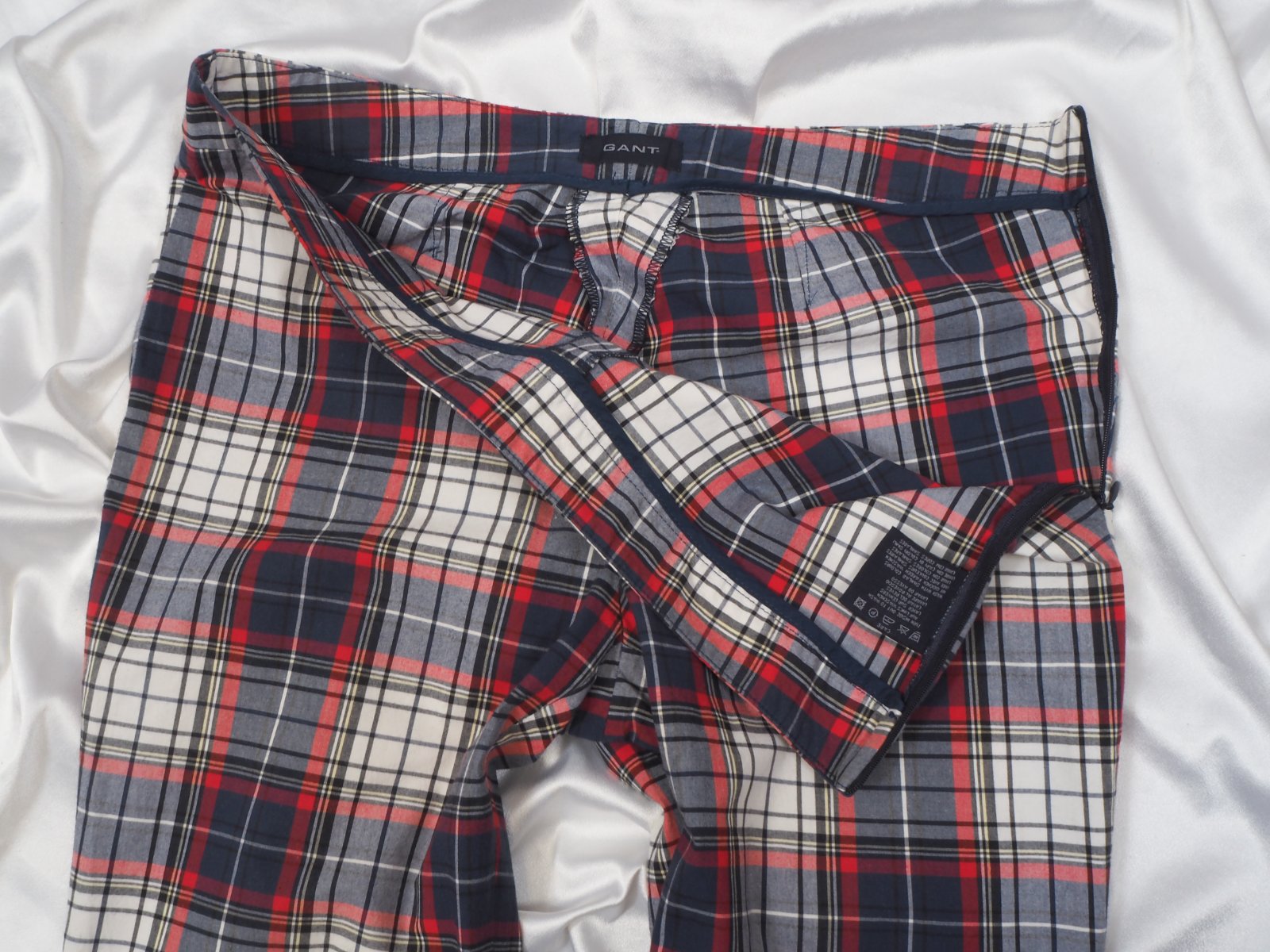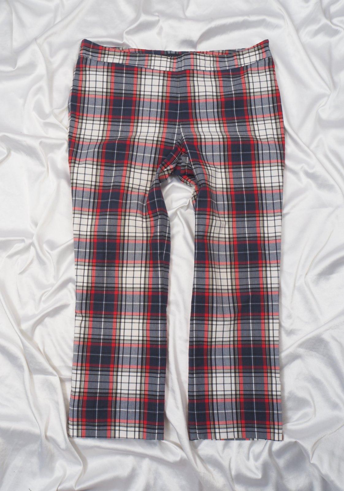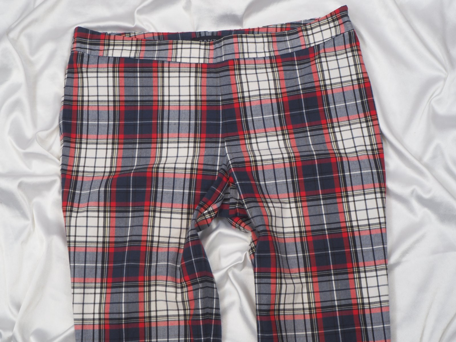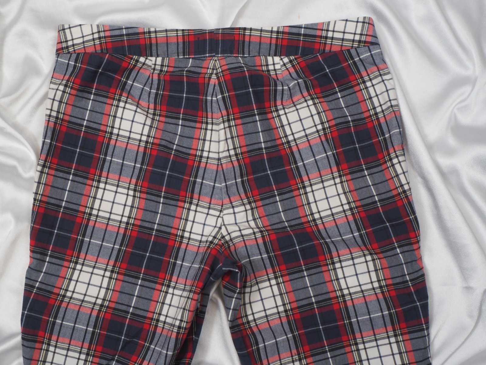 Luxusné dámske kraťasy, tmavomodré-bielo- červený káro vzor, zapínanie na bočný zips, vypracované do detailo, materiál 97% bavlna, 3% elastan, super stav.