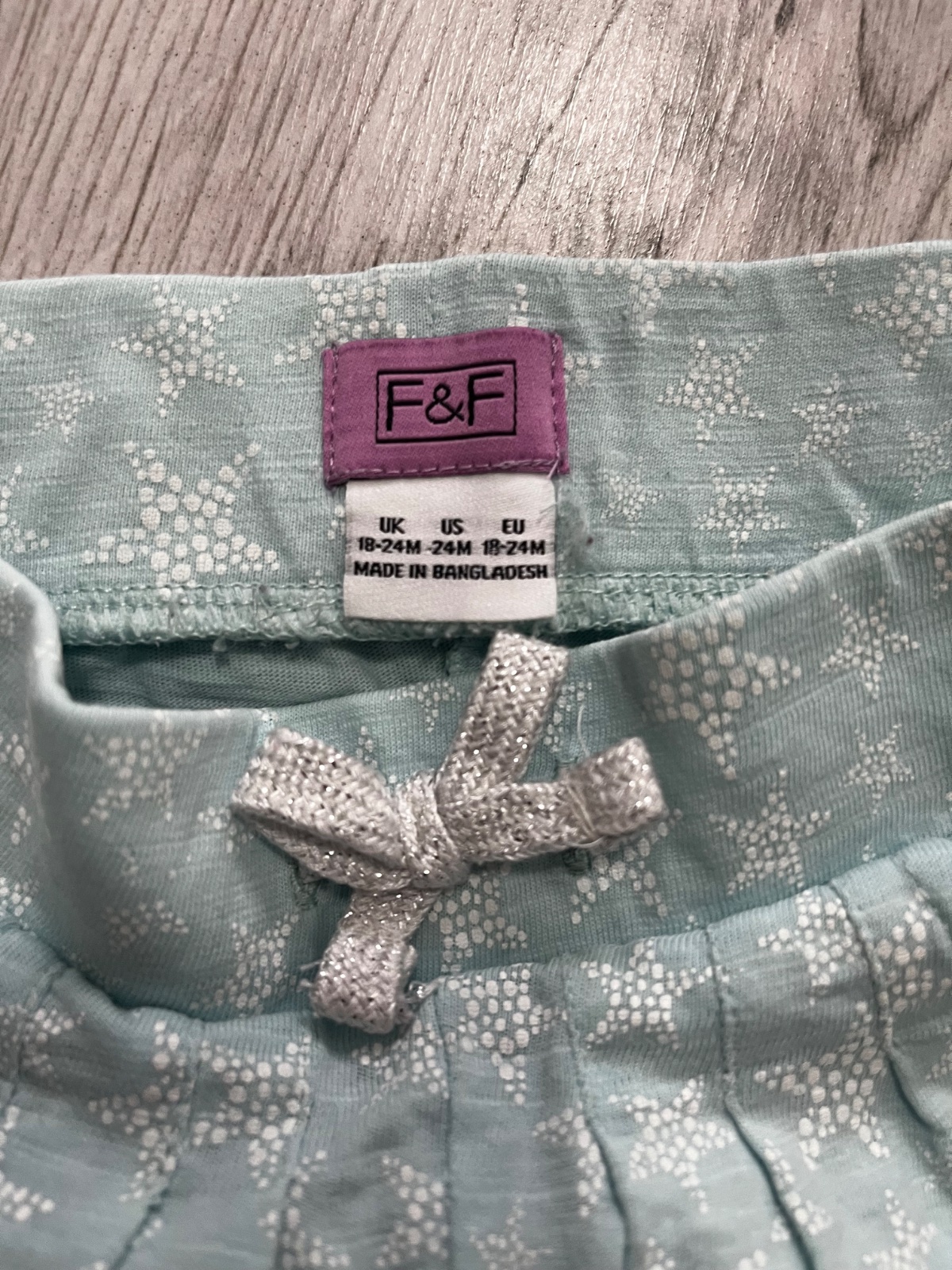 Predám bledomodré krátke nohavice so vzorom bielych hviezd. Sietky maju vačky. Značka F&F, veľkosť: 92 (18-24 mesiacov).