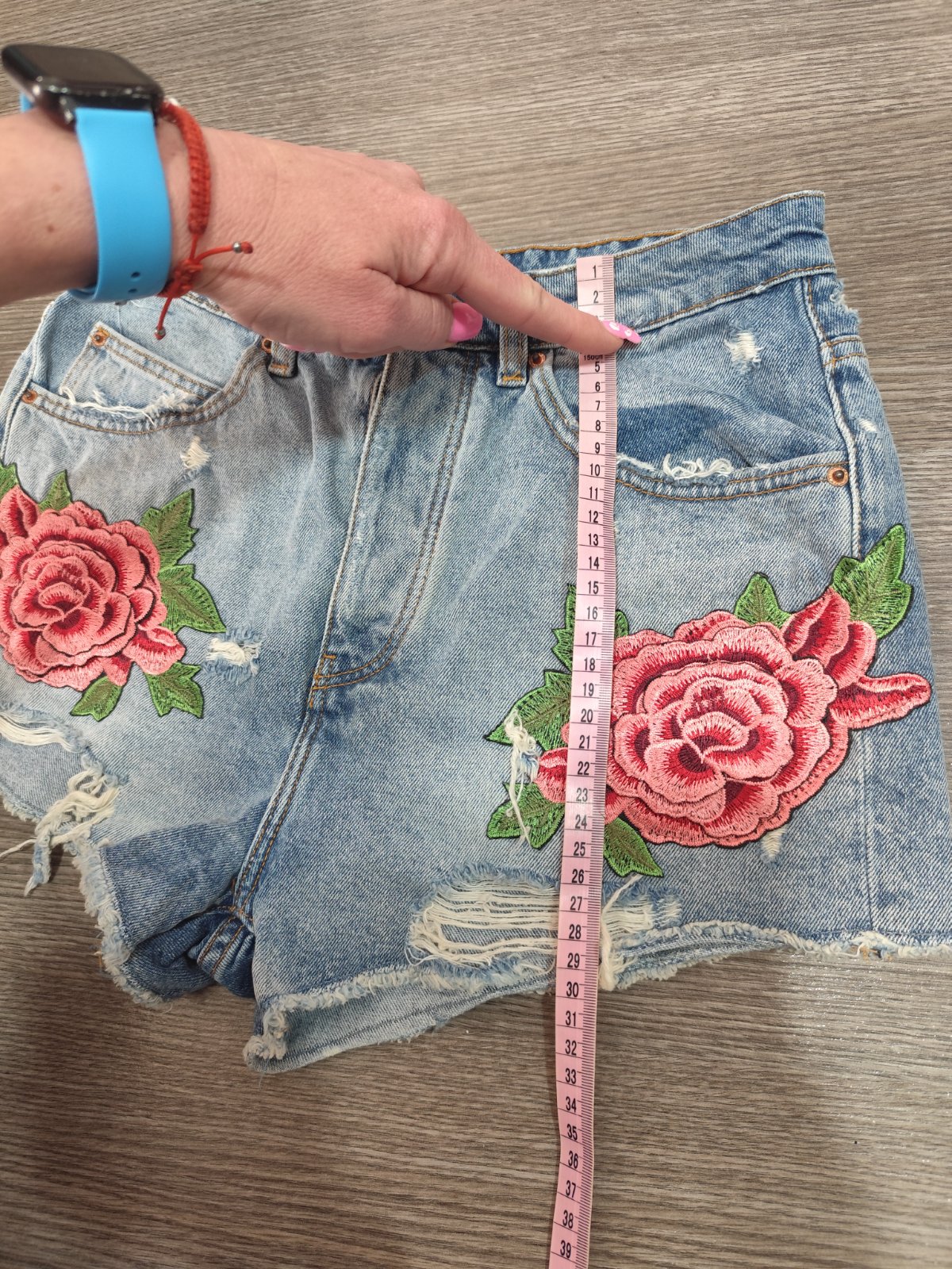 Riflové kraťasy s ružami veľ. S