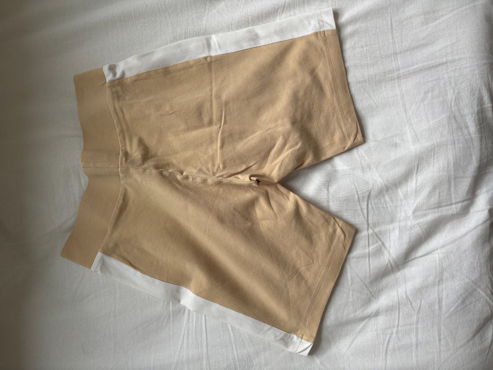 Kratasy s potlacou Kremova farba Nenosene Velkost pise 14/M ale sedia na 36-ku cize S- xs pas 39x2 boky 47 x2 stehno 27,5 x2 predok stred 32cm zadok stred 34