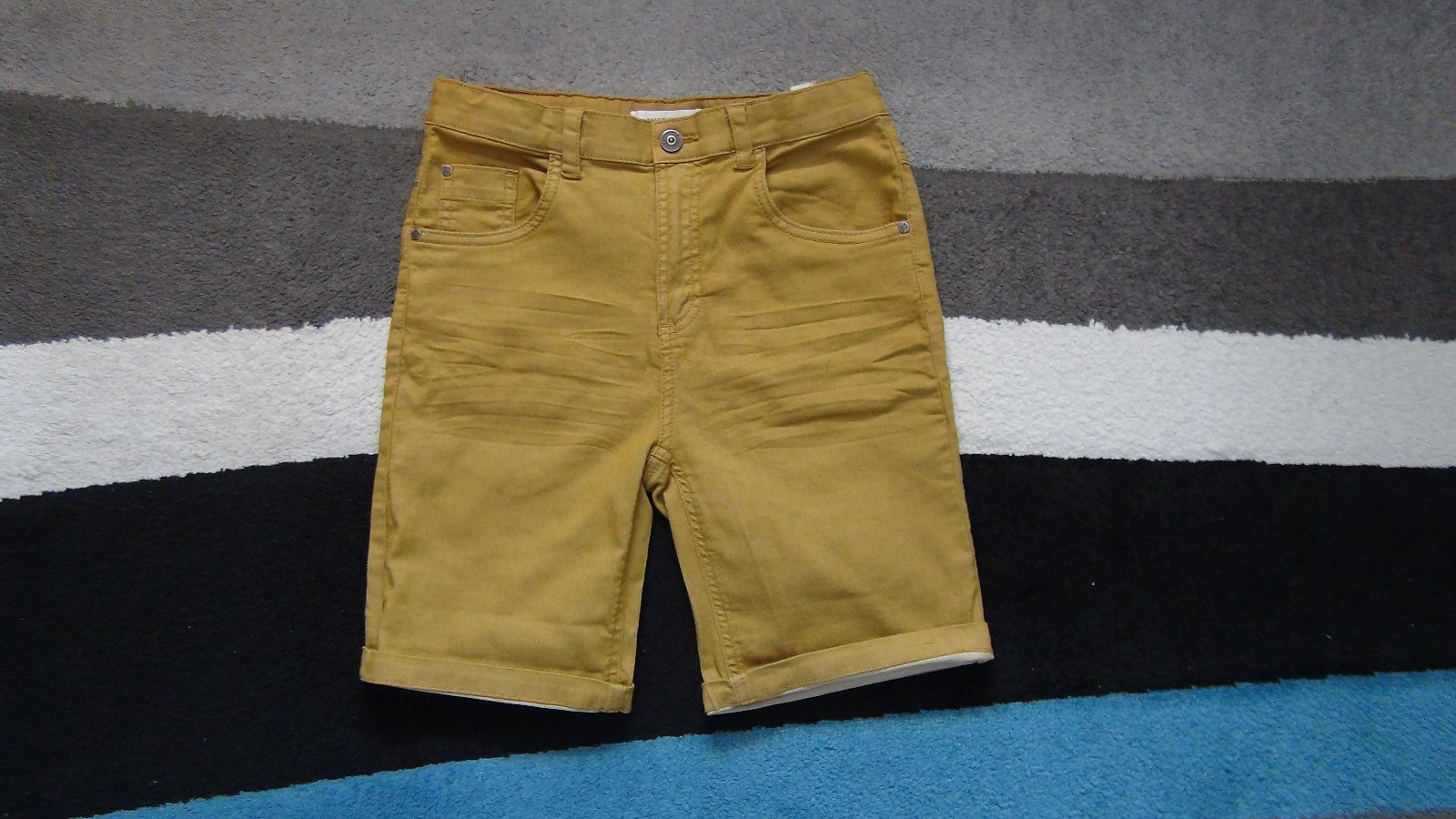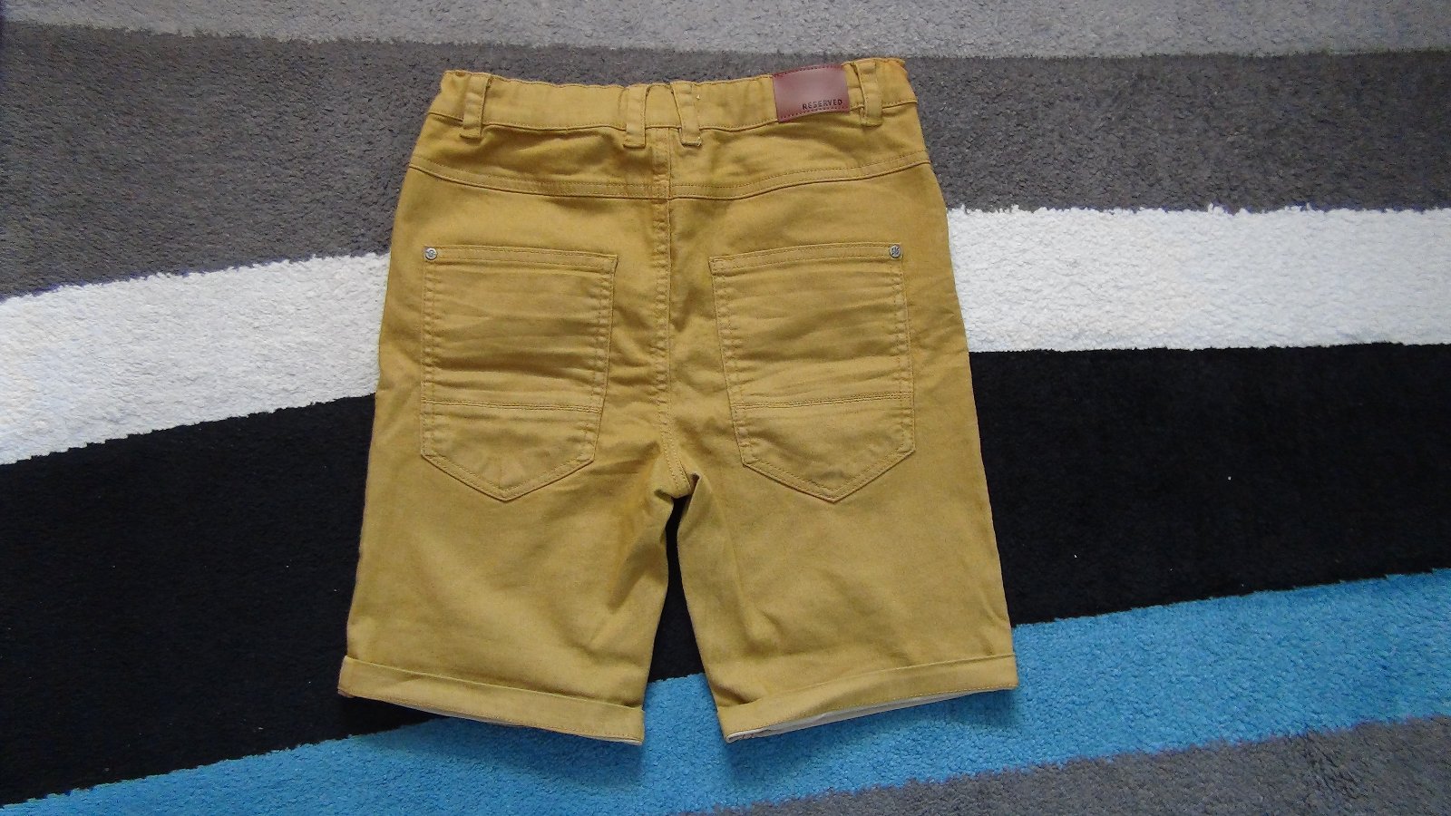 Predám nepoškodené chlapčenské šortky z mäkkej elastickej ako keby rifľoviny značky Reserved vo veľkosti 146. Šortky majú regulovateľnú gumu v páse. Celková dĺžka predného dielu je 44cm, dĺžka zadného dielu 45cm, dĺžka od rozkroka je 19,5cm, šírka v páse je 34,5cm.