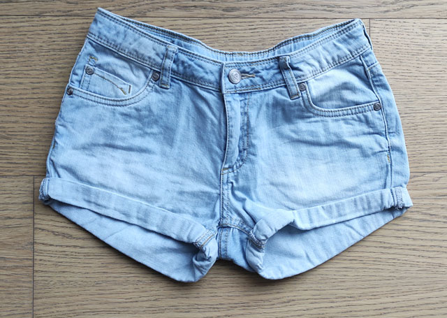 Letné riflové kraťasky, málo nosené, veľmi dobrý stav. pás v kľude 33 cm ( v páse posuvná gumička), D 23 cm