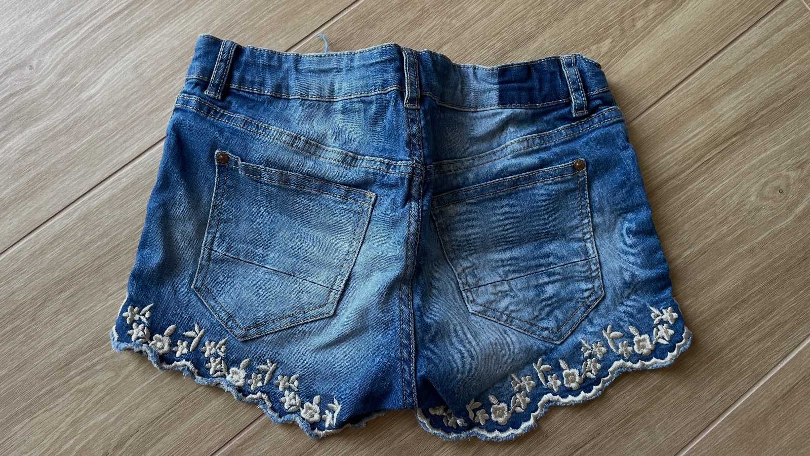 Kvalit. rifľové šortky v146-152,9-12r.,ba elast.