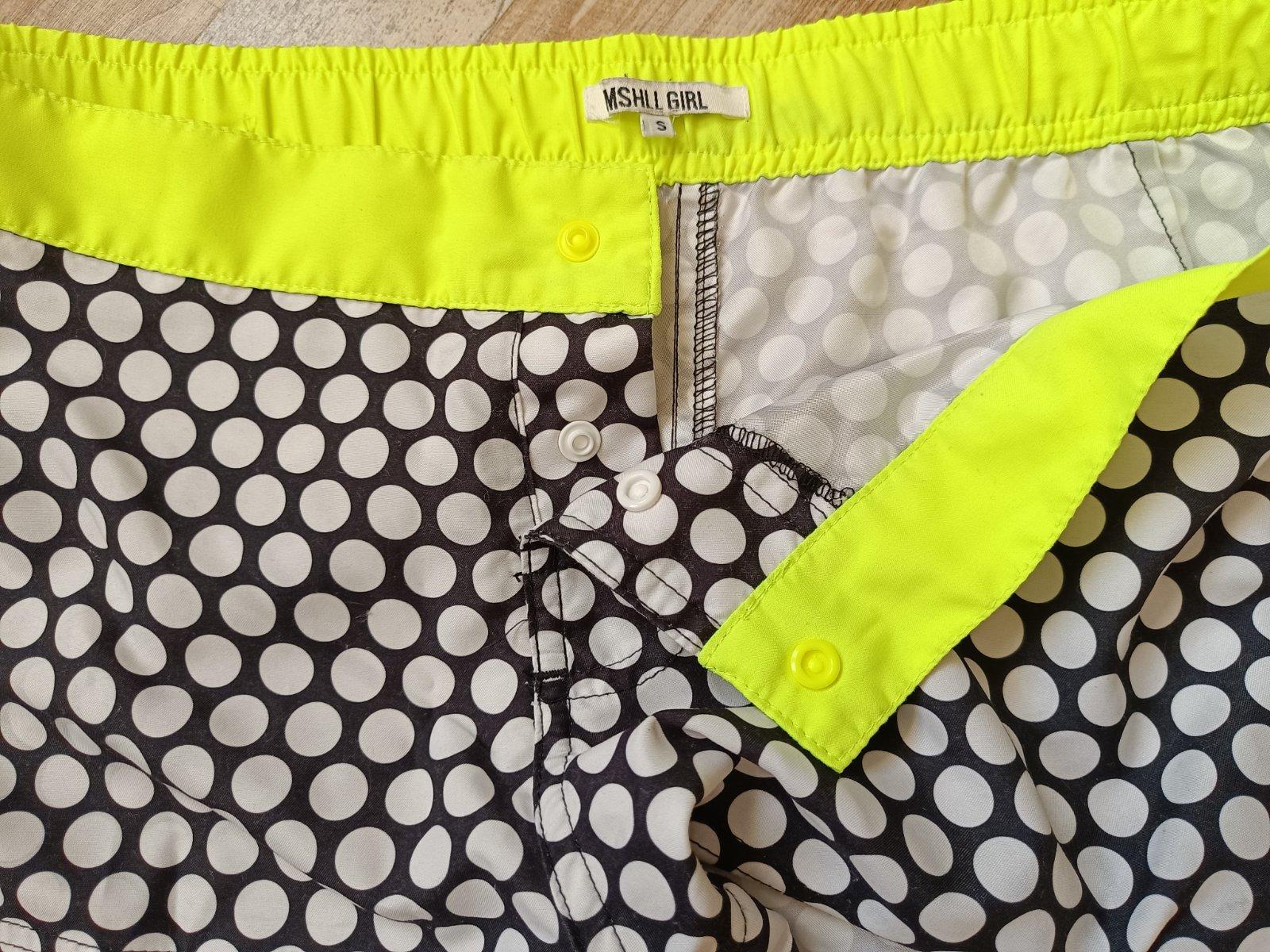 Krásne žlté šortky Voľný strih - veľká výhoda 🙂 V pase gumicka Bez poskodení príjemný materiál Bez známok používania Nesadla veľkosť, boli oblečené jedenkrát Kľudne veľkosť S-M