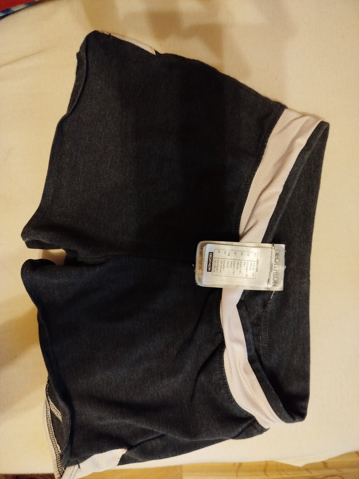 Pekné nosené kraťase na gymnastiku. Šírka pása v klude je 26,5 natiahne sa do 34cm, bočná dĺžka je 19cm - decatlon Pridám tielkové tričko - nosili sme spolu s kratasmi. - tako