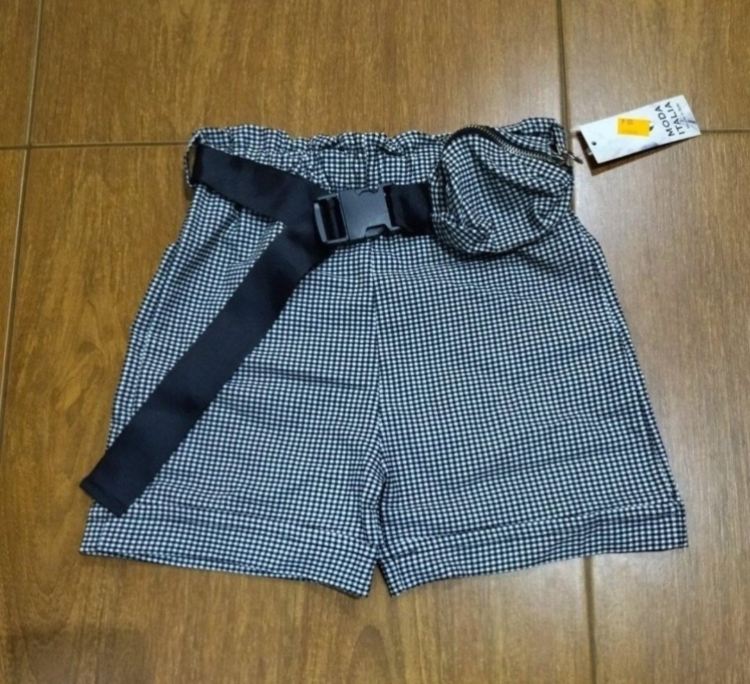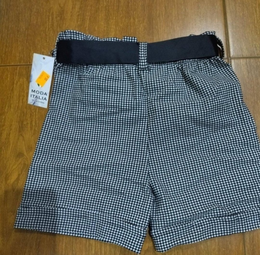 Krásne karovane šortky na jar s opaskom a kapsickou
