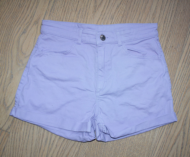 Fialové kraťasky na leto, nosené, veľmi dobrý stav. pás v kľude 32,5 cm, D 27 cm