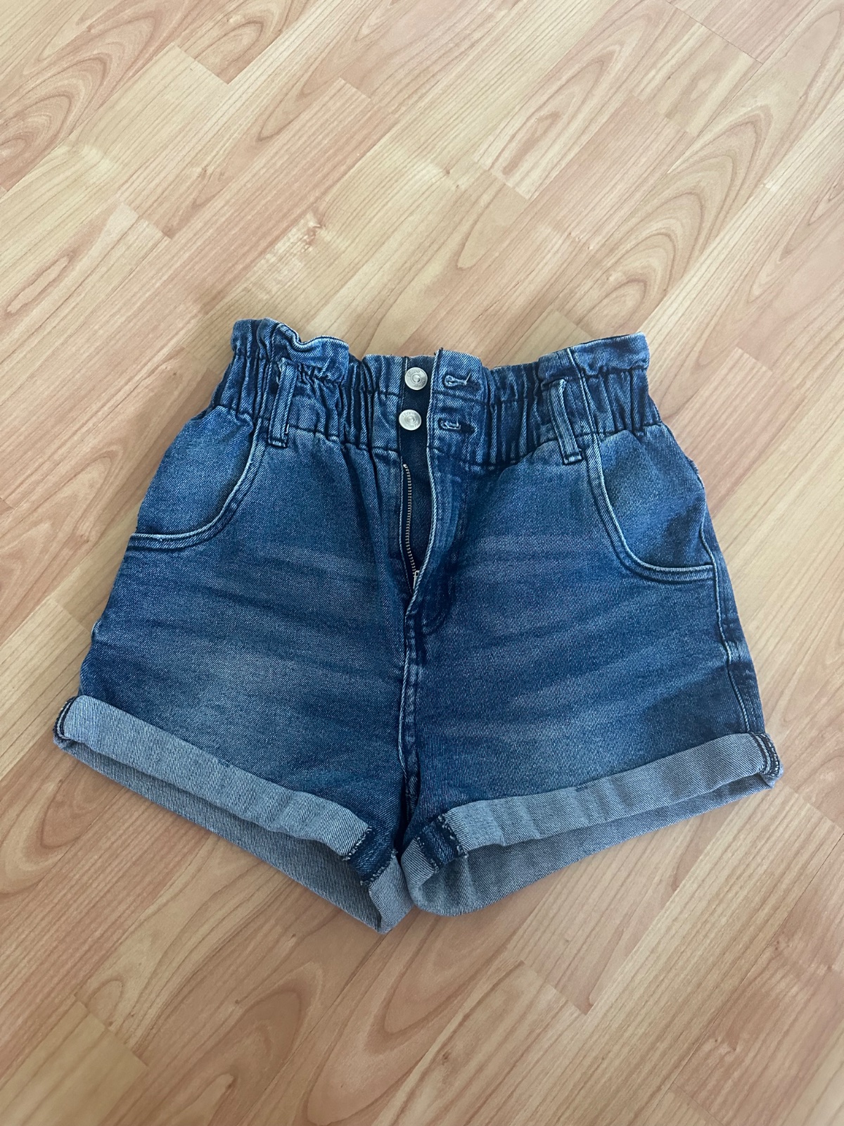 Krásne kraťasy s vysokým pásom, krásne sedia na postave Mne bohužiaľ úzke Veľkosť XS aj sedia (šírka pásu 33 max. 36) Trochu elastické
